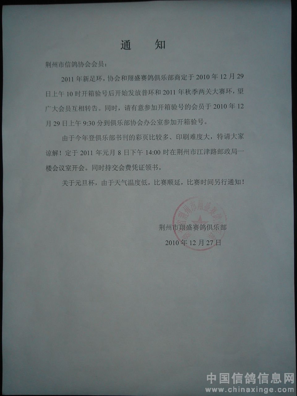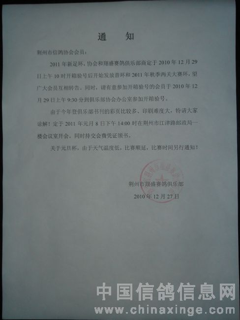 关于发放2011年鸽环的通知