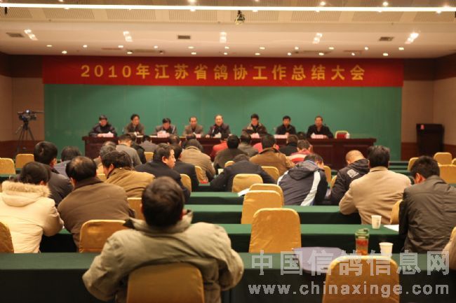 12月25日-26日,江苏省信鸽协会在南京举办2010年鸽协工作总结暨颁奖大会,江苏省体育总会秘书长迟宁文、江苏省社体中心党支部书记顾铁泉,以及省鸽协领导班子、各省辖市鸽协负责人共50余人出席会议,省鸽协会长徐荣生主持了会议。
