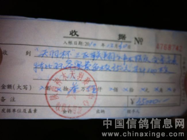 2011年“天羽杯”500公里首届精英挑战赛规程 一、主办:神木,靖边,榆林参赛鸽友 二、承办:神木天羽赛鸽公棚 三、监管:陕西省信鸽协会 四、参赛费用及参赛鸽 每羽参赛费350元,参赛鸽总数为300羽,每市(县)100羽为一个参赛团体,取环时一次性缴纳3.5万元。(每市、县仅限一组) 五、获奖名次及奖金分配: 1、冠军:40000元、亚军14000元、季军8000元、4—10名各4000元、11—20名各2000元、21—30名各奖神木天羽赛鸽公棚2012年参赛卡一张,前三名各发奖杯一尊。 2、团体赛取一名,在神木天羽赛鸽公棚决赛获奖名单中,各参赛团体以进奖羽数多者为胜,如果羽数相同以各团体单鸽第一名排序,名次前者为胜;奖金15000元,奖杯一尊。 六、其它事项 1、本次比赛以市(县)为单位,必须统一冠名。 2、本次比赛和天羽赛鸽公棚决赛同步进行,必须缴纳天羽赛鸽公棚的参赛费+饲养费+挑战赛350元。 3、本次比赛由天羽赛鸽公棚赞助奖杯、足环,2012年天羽公棚参赛卡10张,参赛费足额发奖,天羽公棚不收任何费用。 4、本次比赛由神木鸽友王占占和靖边鸽友李东旭先生分别赞助1万元,由天羽公棚赞助奖杯,参赛卡,故衷心感谢他们为赛鸽事业的支持。 5、获奖鸽在天羽赛鸽公棚获奖名次里录取,如果名次没有录取满,剩余奖金由获奖鸽平分,本次比赛设伯马(所有奖金归伯马)。 6、其他未尽事宜均按神木天羽赛鸽公棚2011年竞翔规程执行。 7、本规程如有奖金变动另行通知。 8、本规程解释权为一市两县参赛鸽友。 9、报名时间为2011年1月10号止。