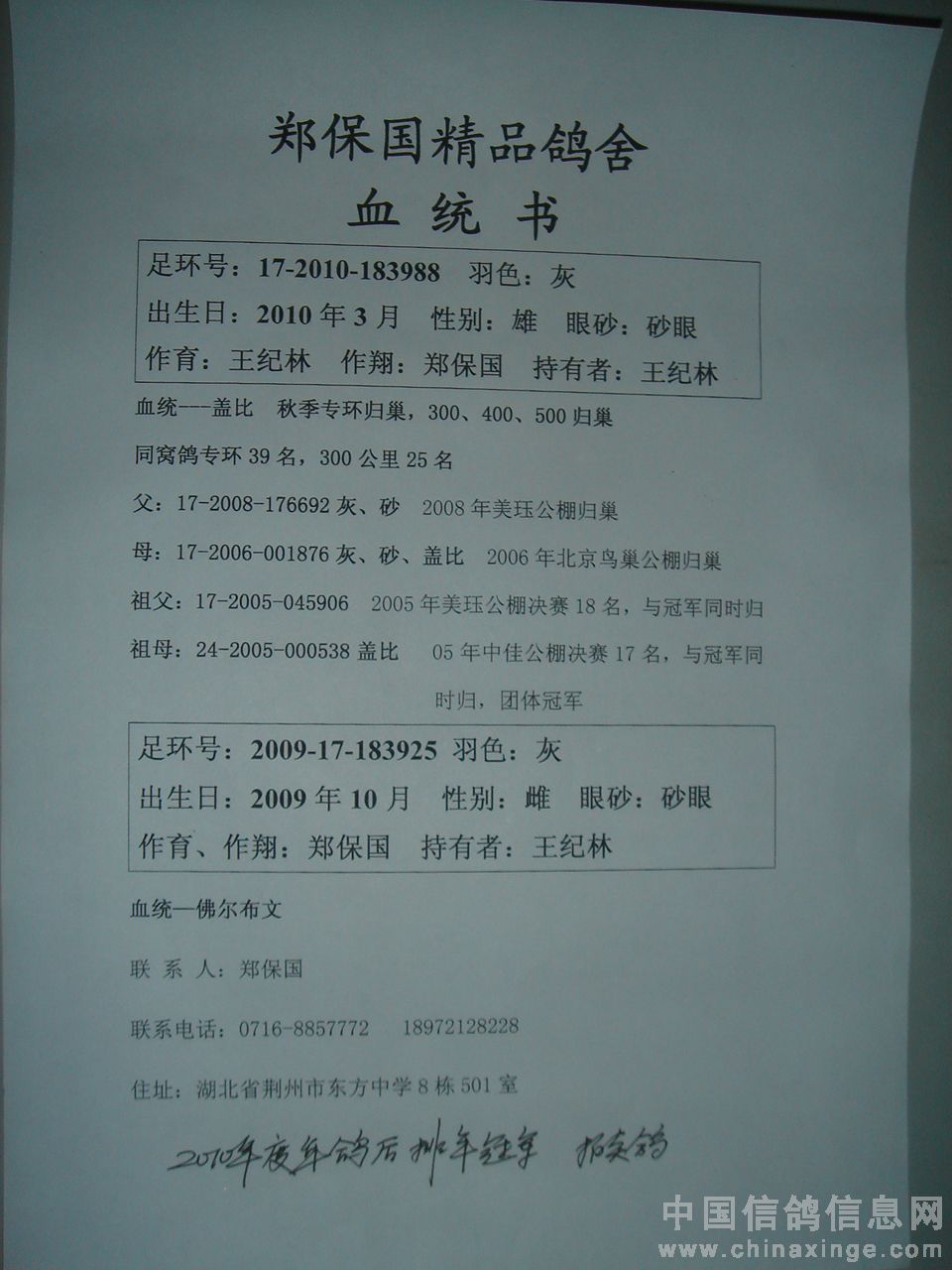 2017年11月26日480公里新郑站年度王中王比赛集鸽清单
