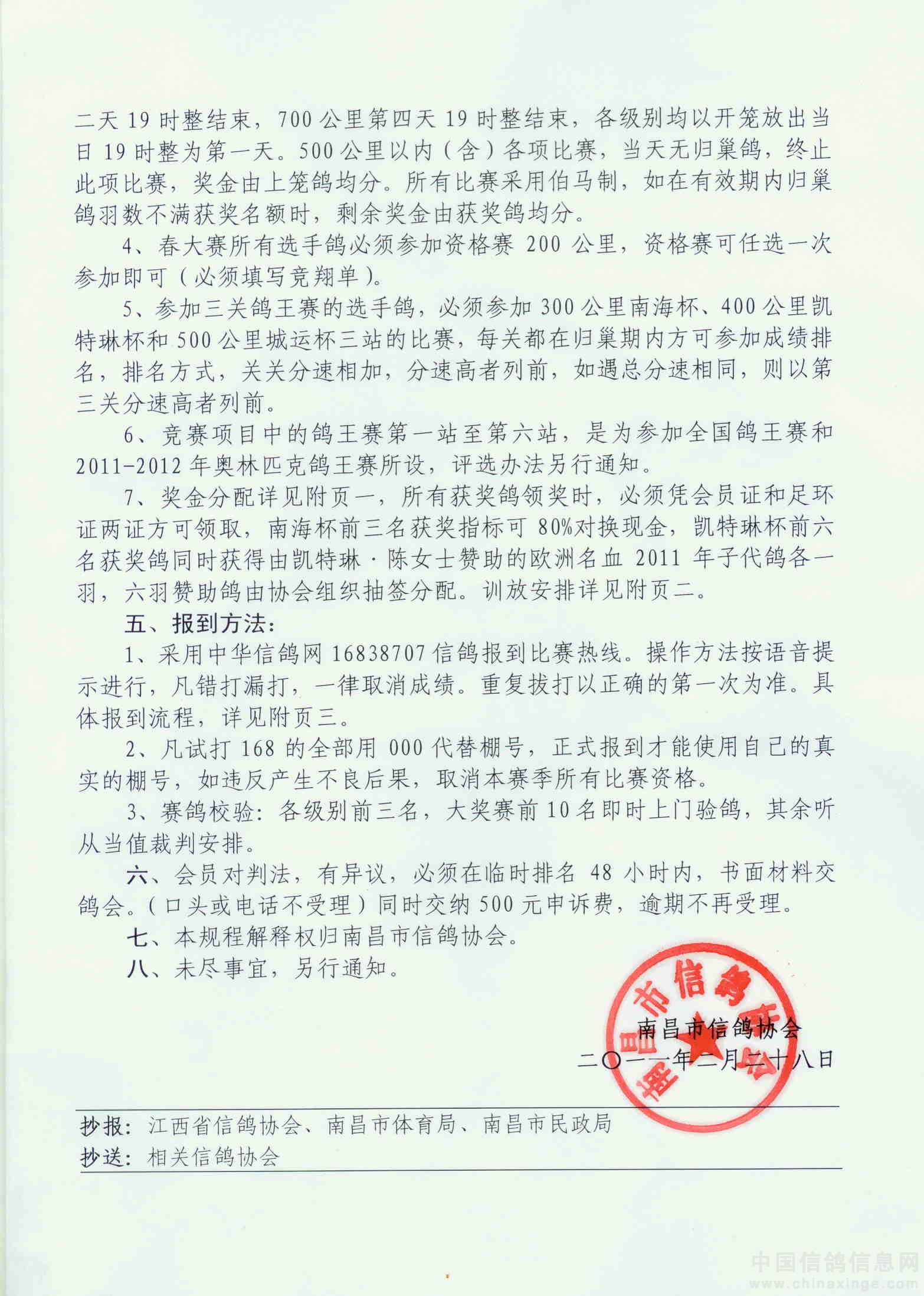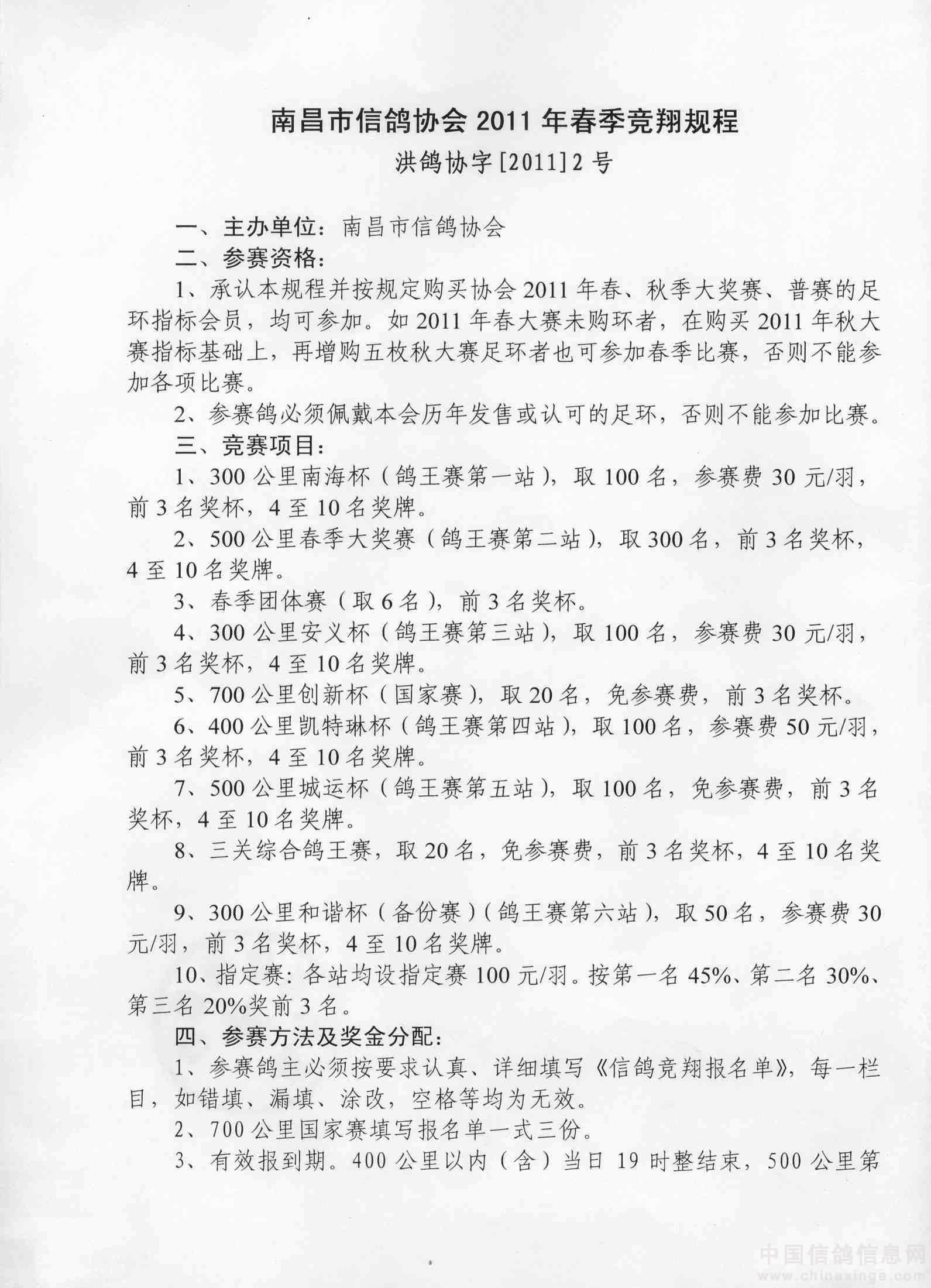 南昌市信鸽协会2025年春季大赛竟翔规程