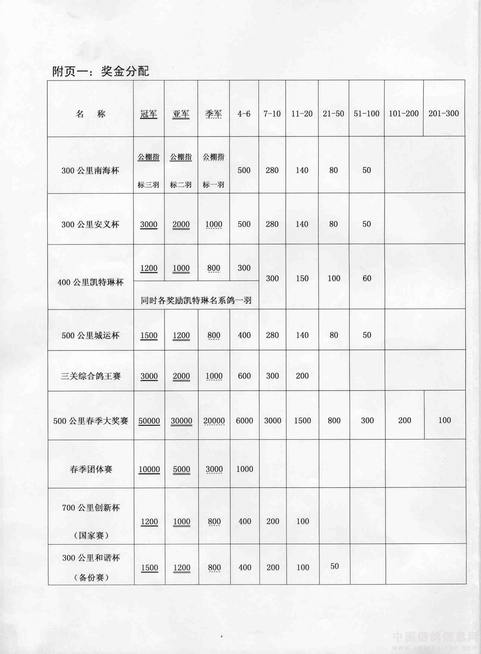 南昌市信鸽协会春季三关鸽王综合赛成绩