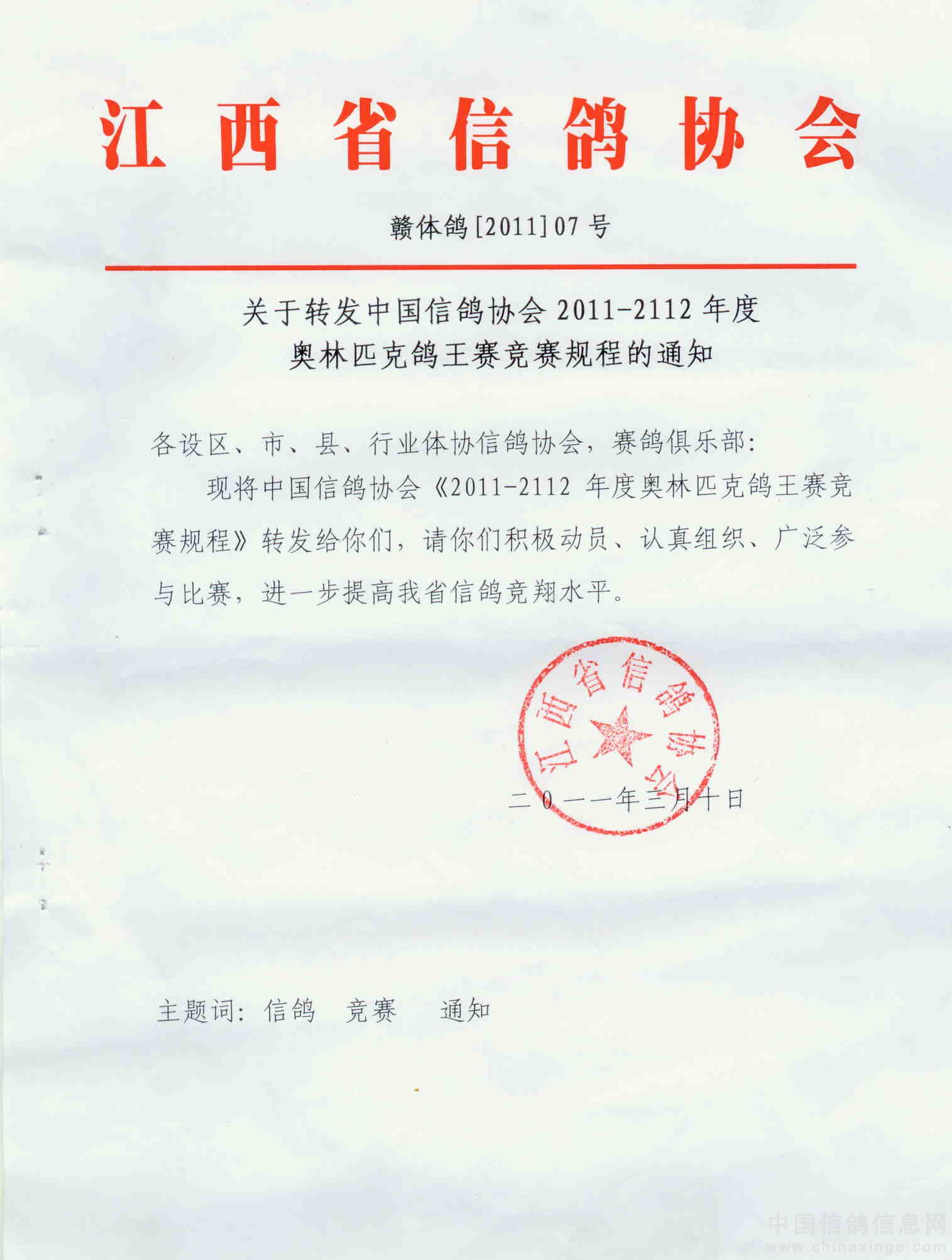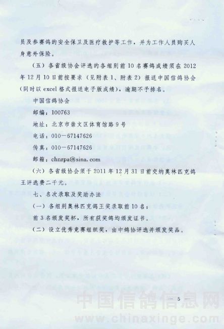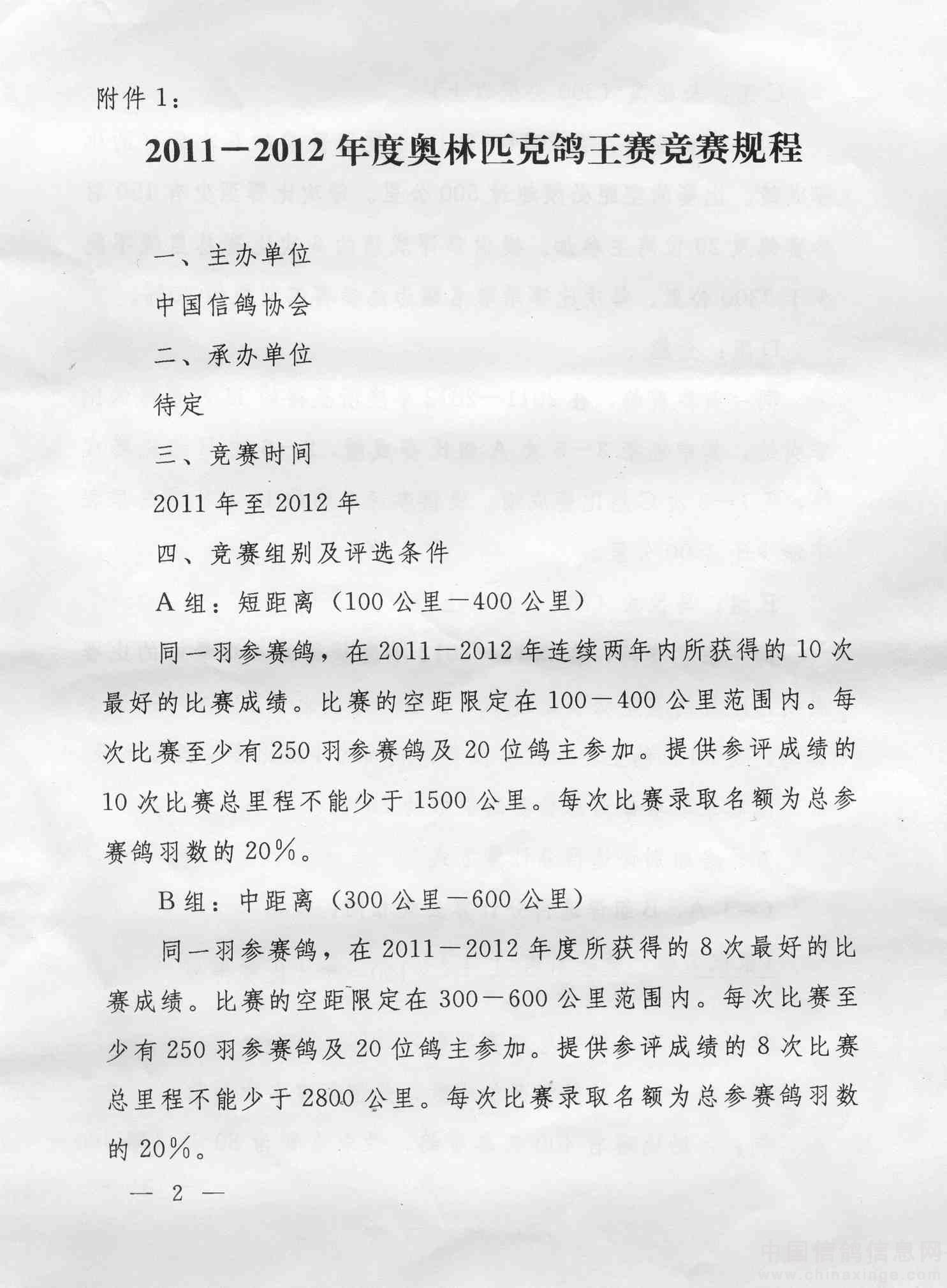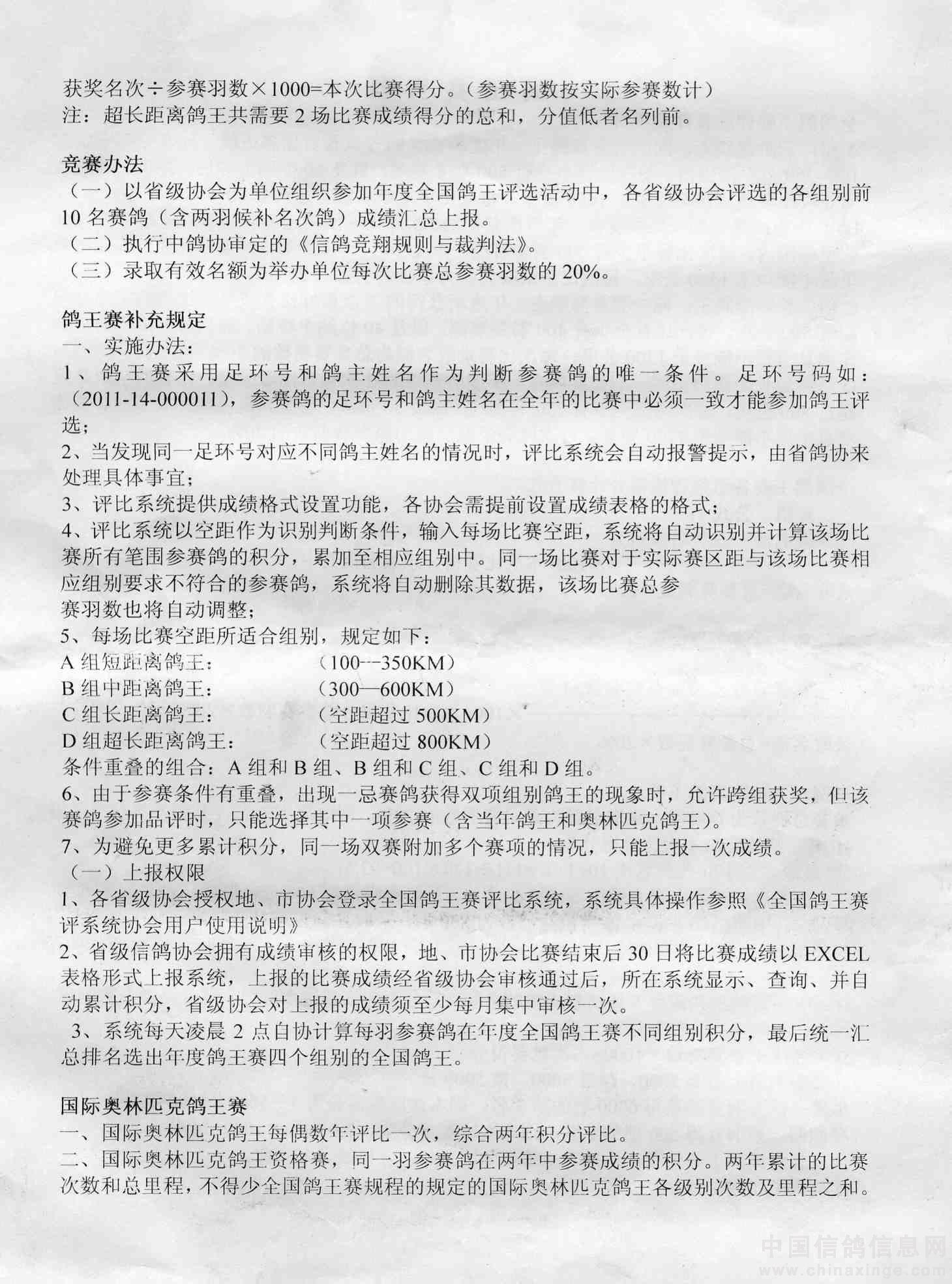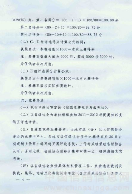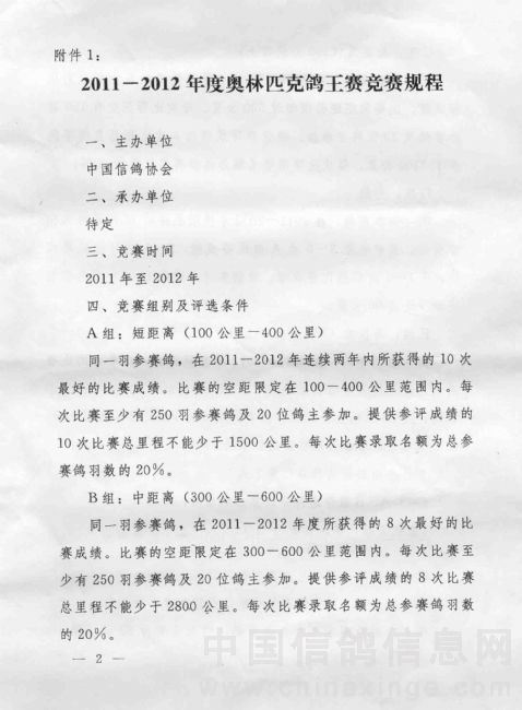 关于转发中国信鸽协会2011-2012年度奥林匹克鸽王赛竞赛规程的通知