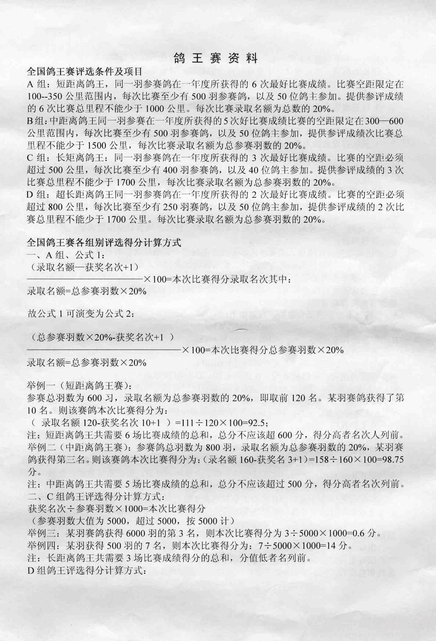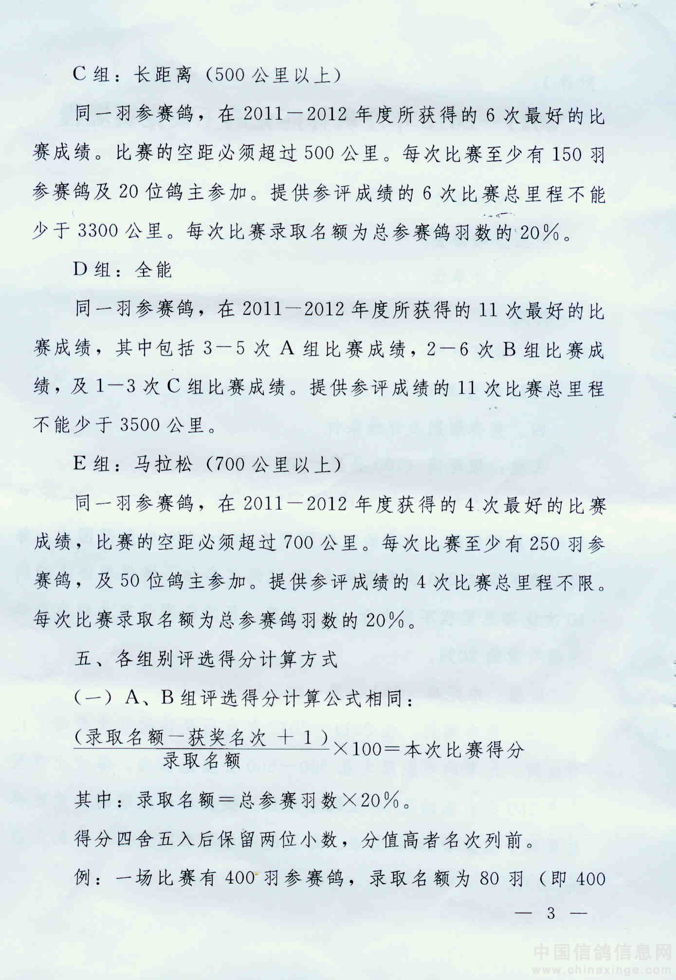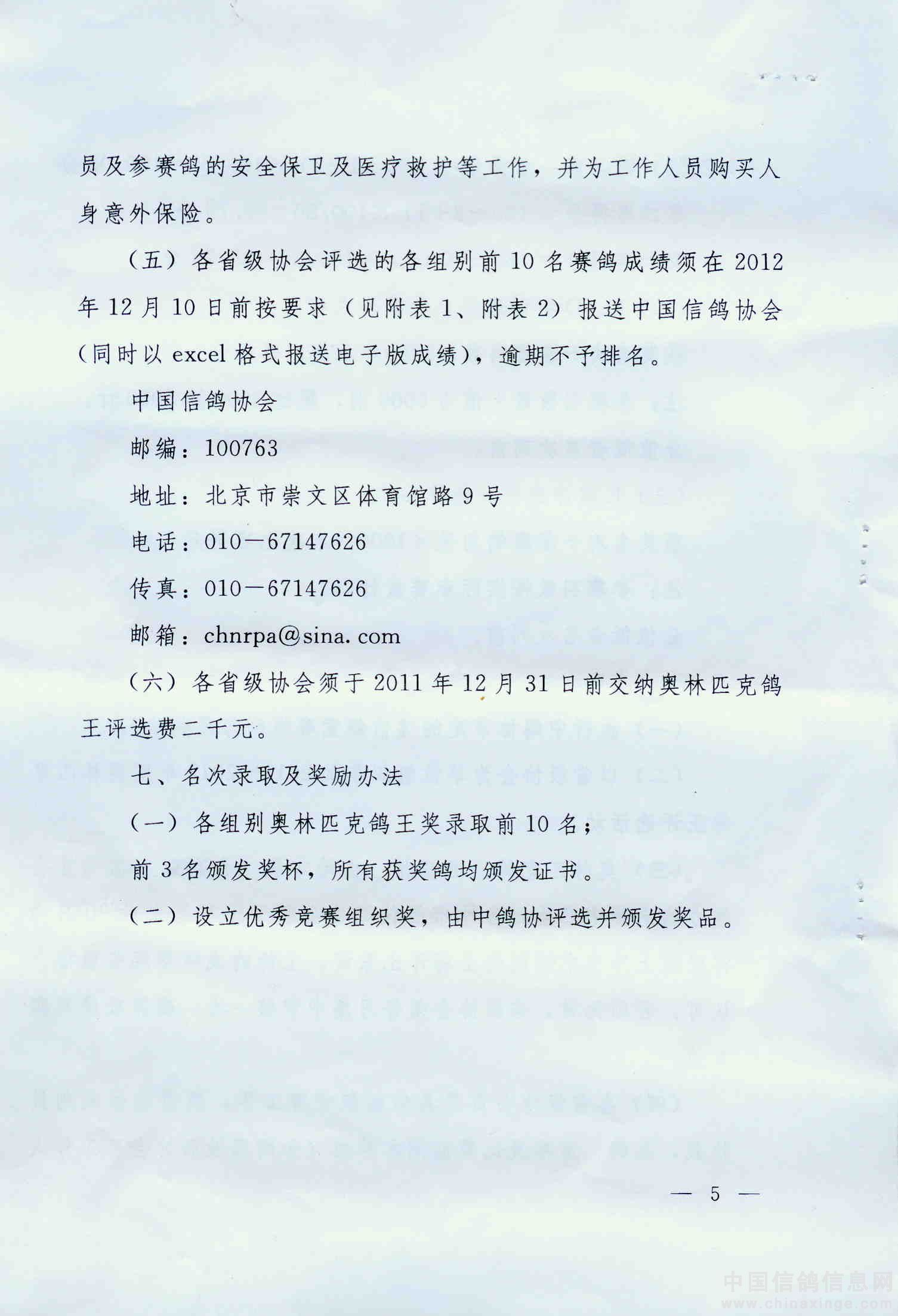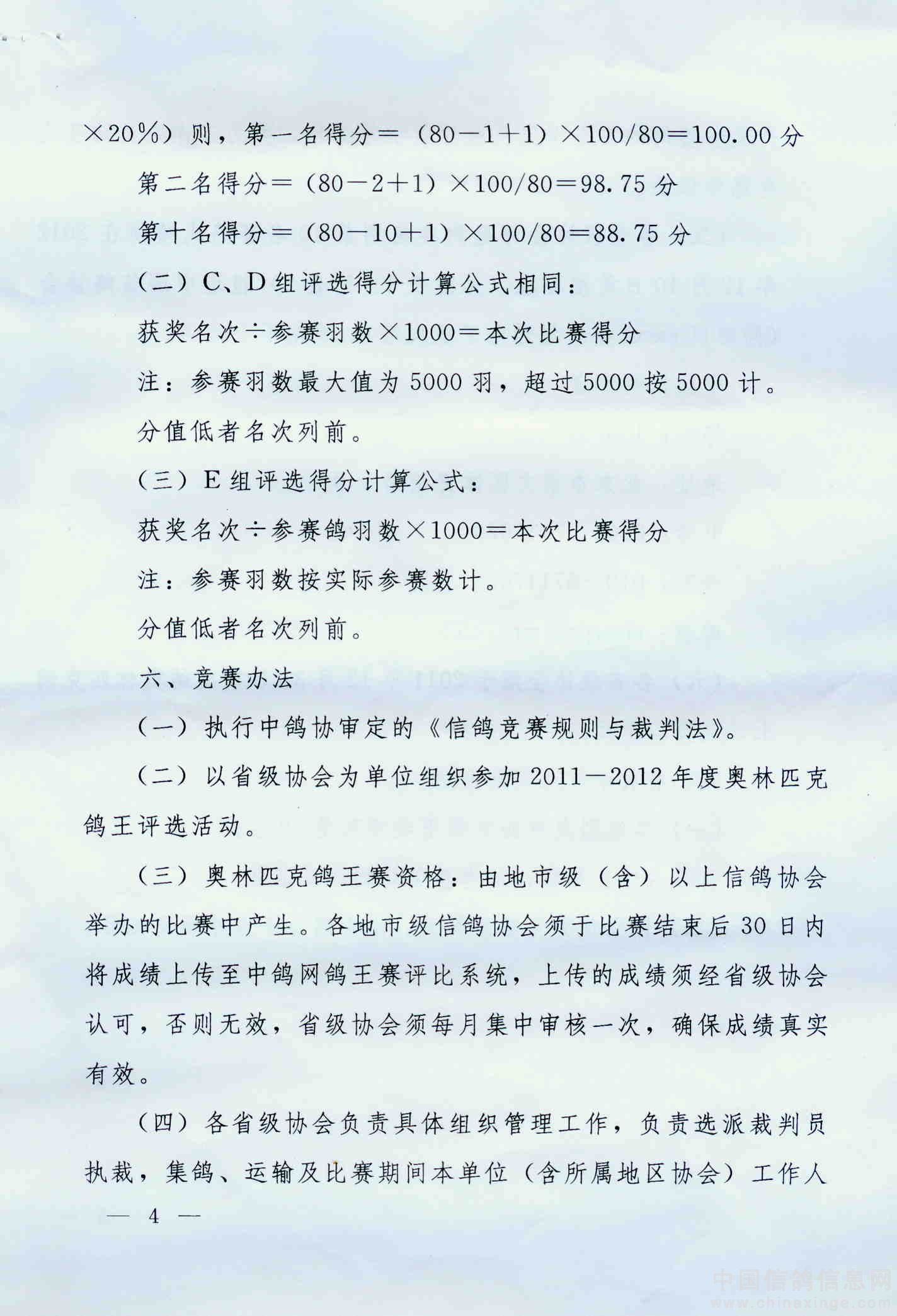 关于转发中国信鸽协会2011-2012年度奥林匹克鸽王赛竞赛规程的通知