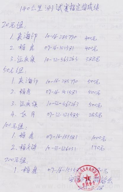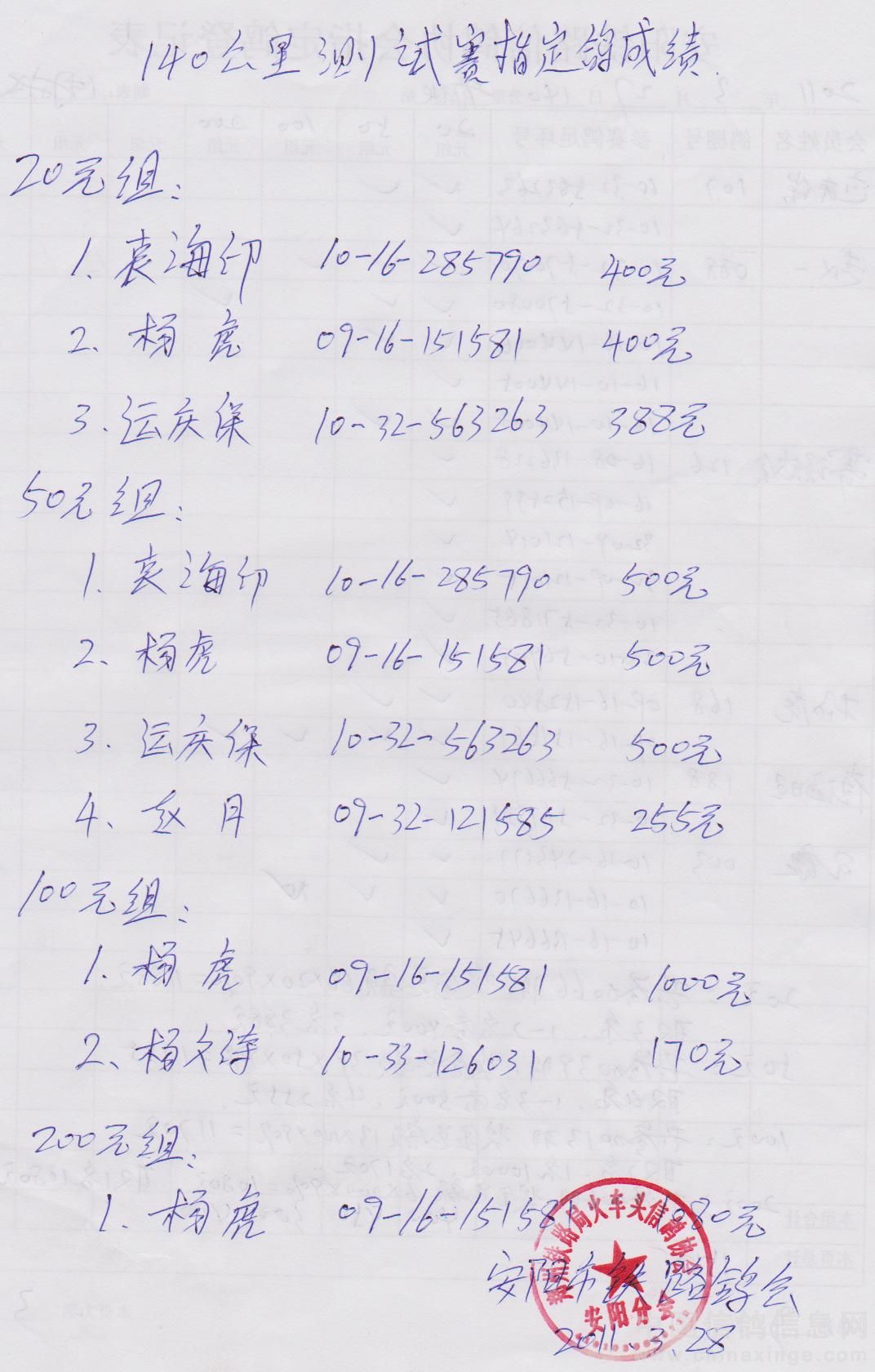 第二次140公里指定鸽成绩
