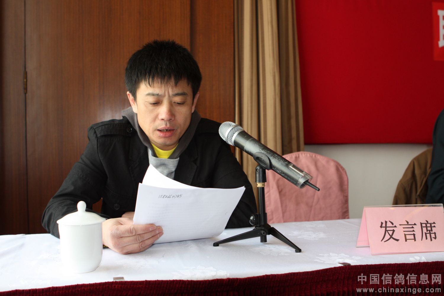 上海市体育局党委副书记、市体育总会副主席、上海市信鸽协会主席刘建胜因临时有要事未能到会,委托沈佳春代为宣读书面欢迎辞,对各地同仁光临上海表示欢迎,并预祝会议取得圆满成功。