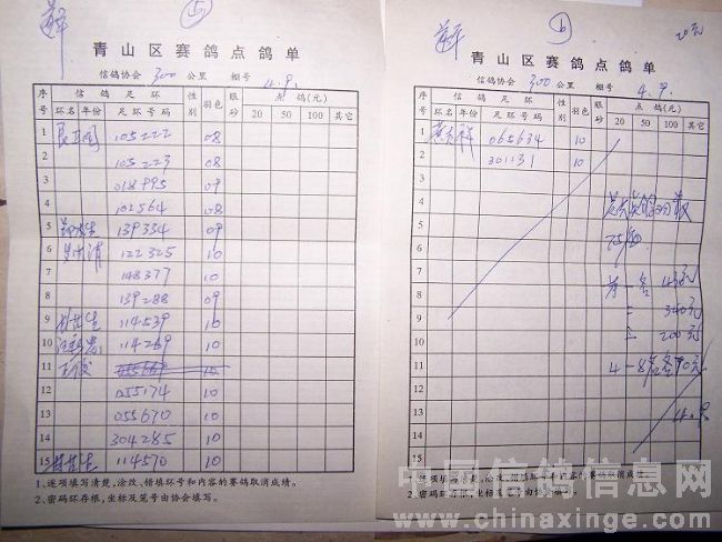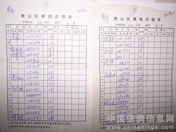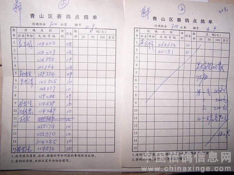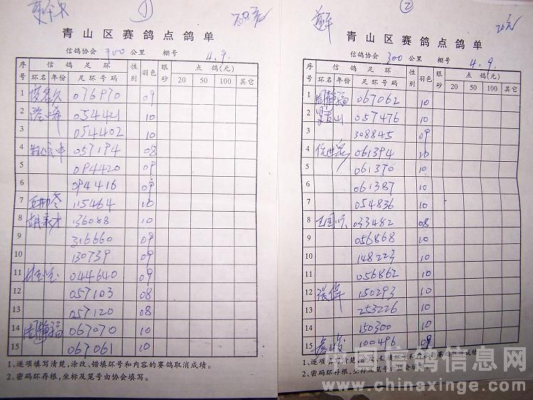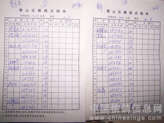 武汉市洪山区信鸽协会2011年4月9日300公里遂平竞赛集鸽总羽数