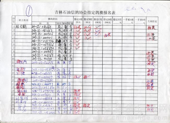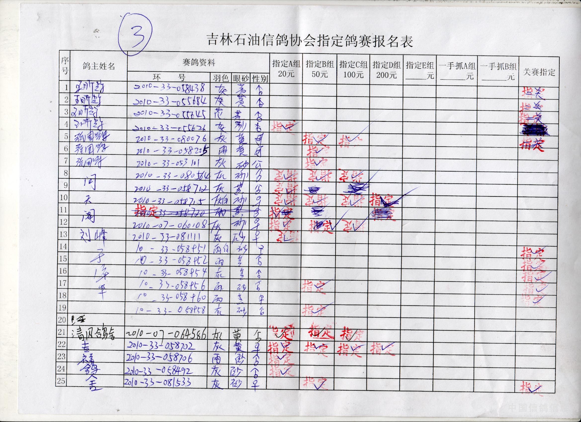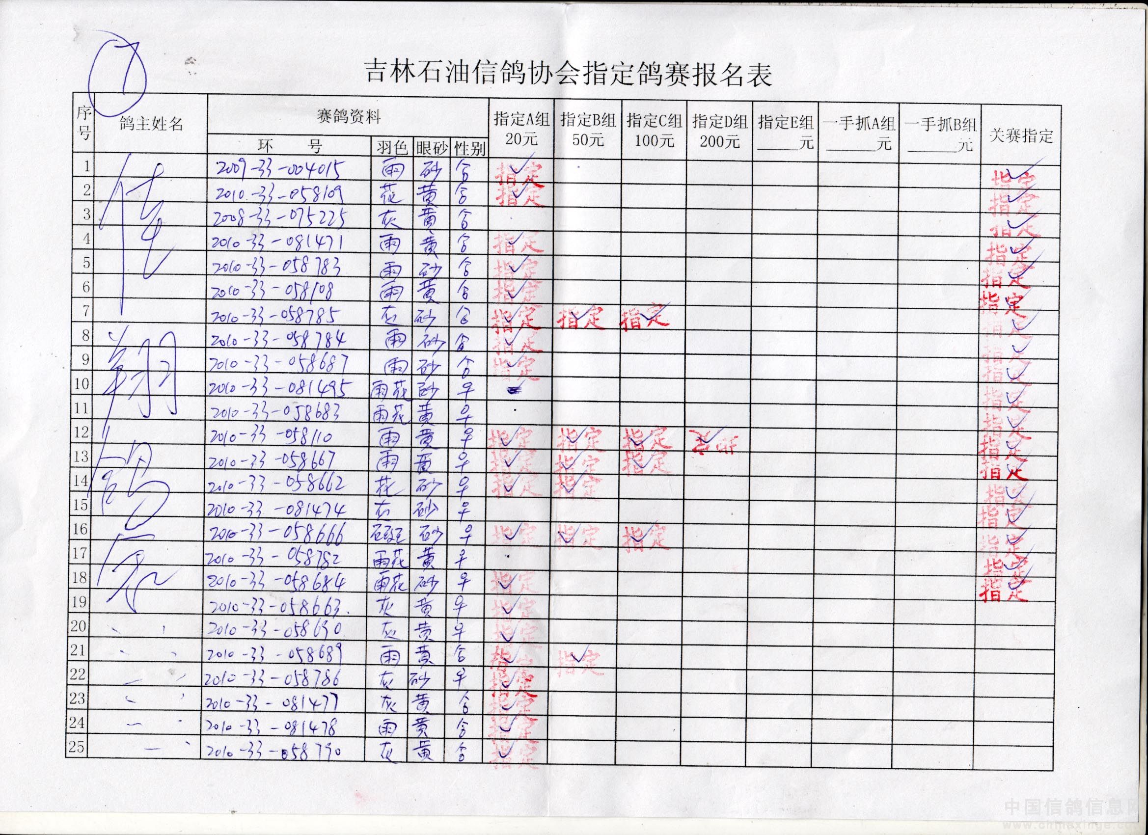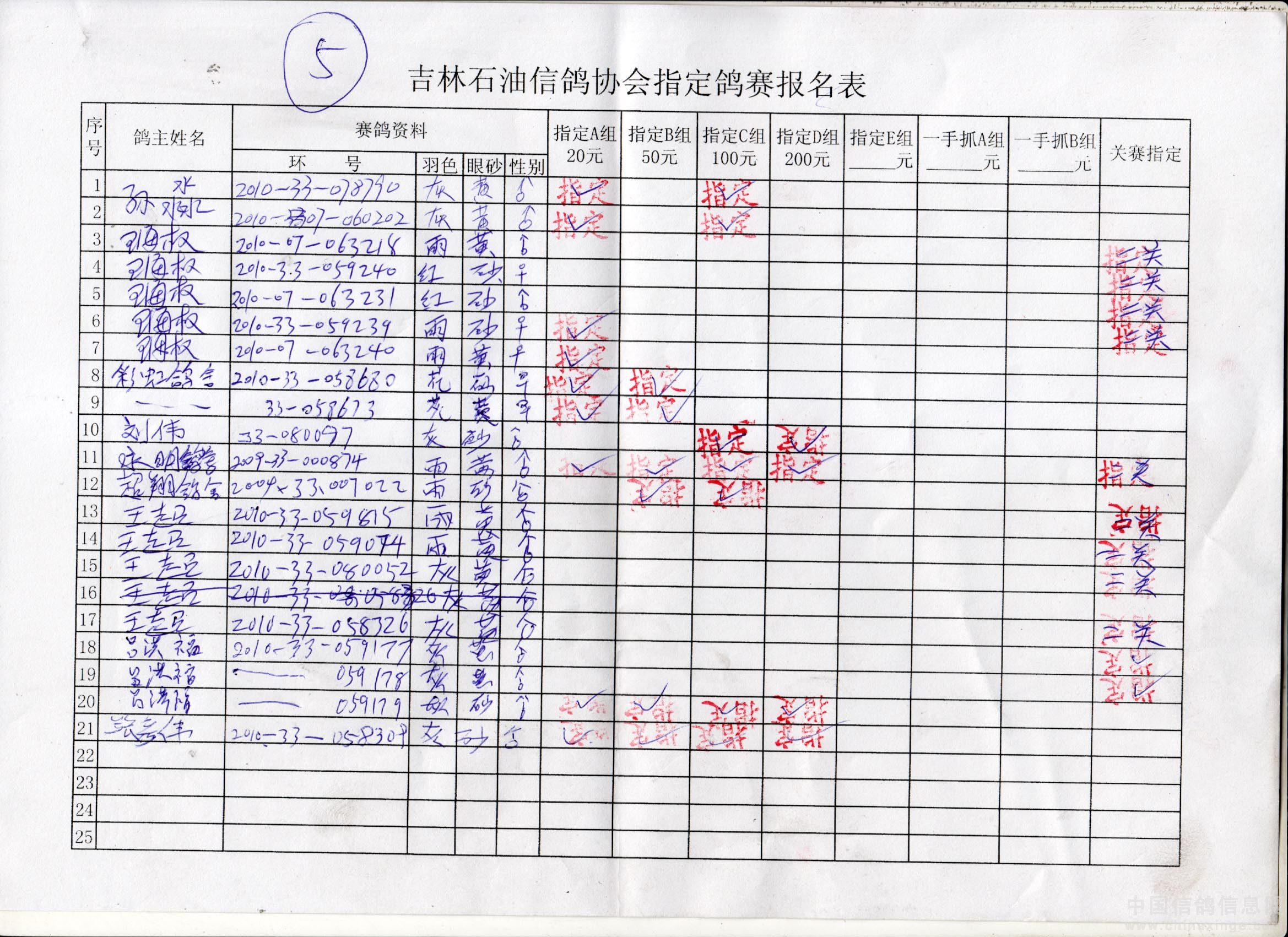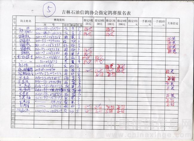2011年300公里内蒙开鲁站指定鸽原始成绩单
