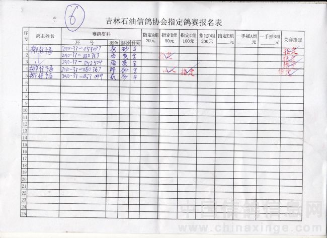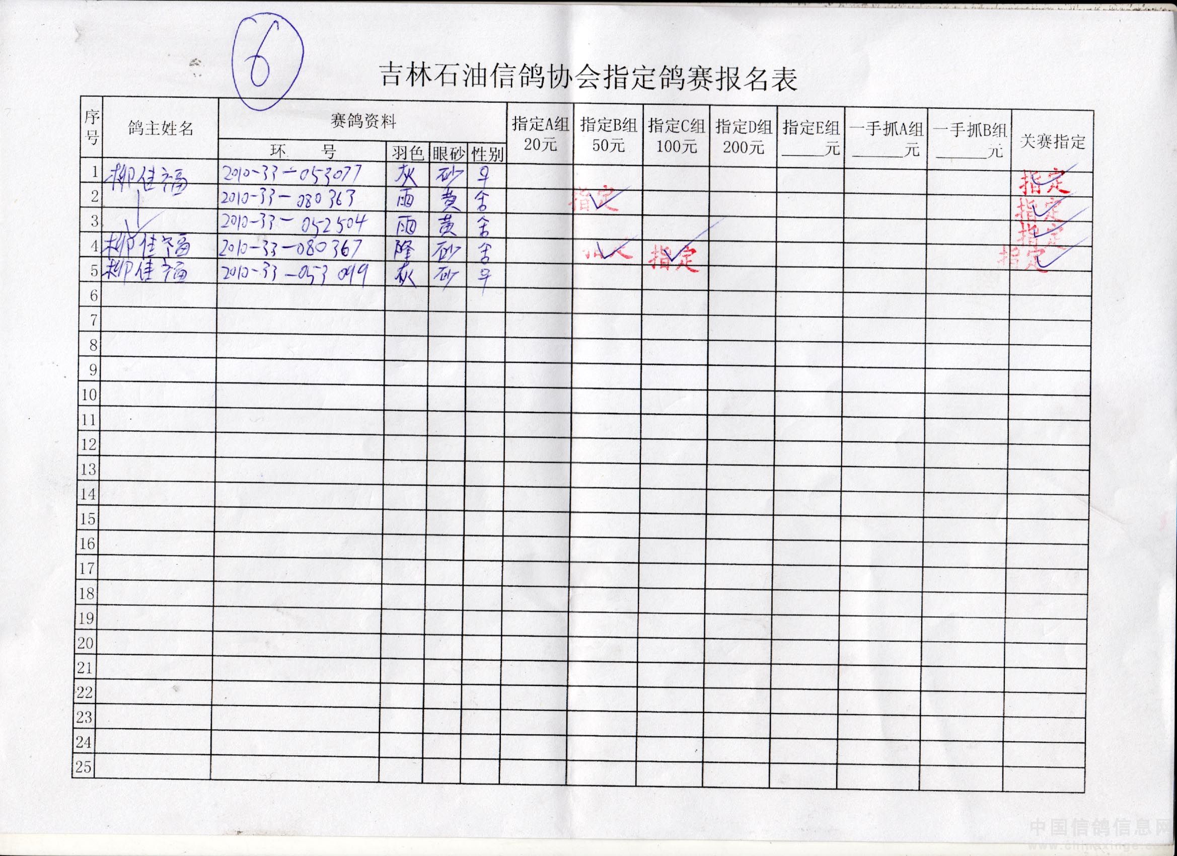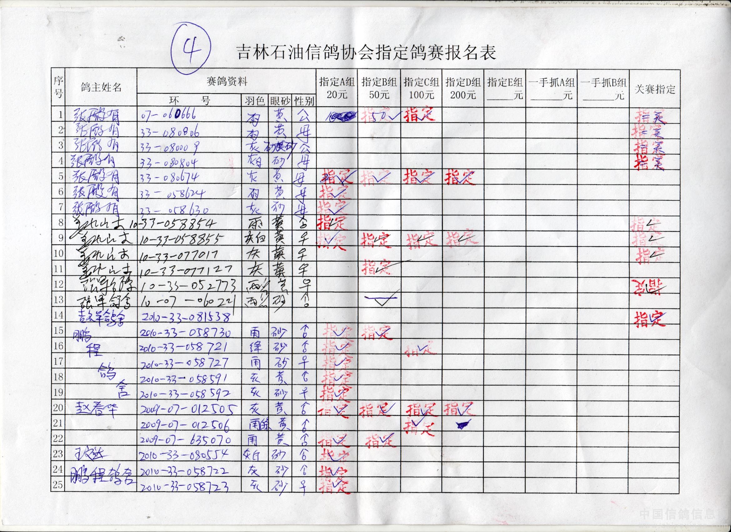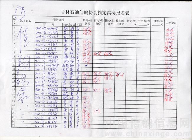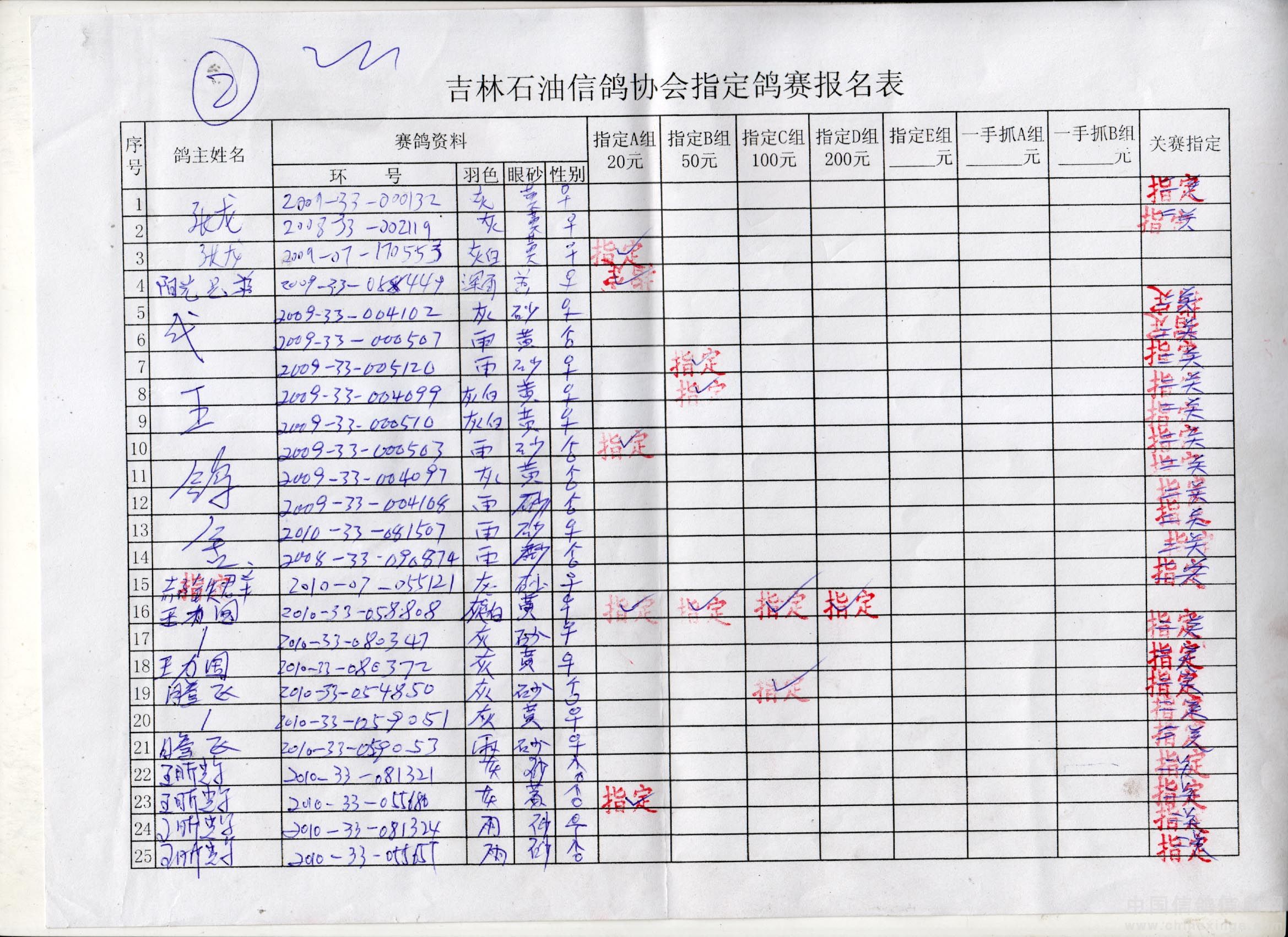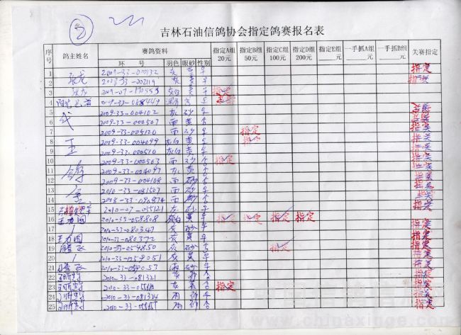 2011年300公里内蒙开鲁站指定鸽原始成绩单