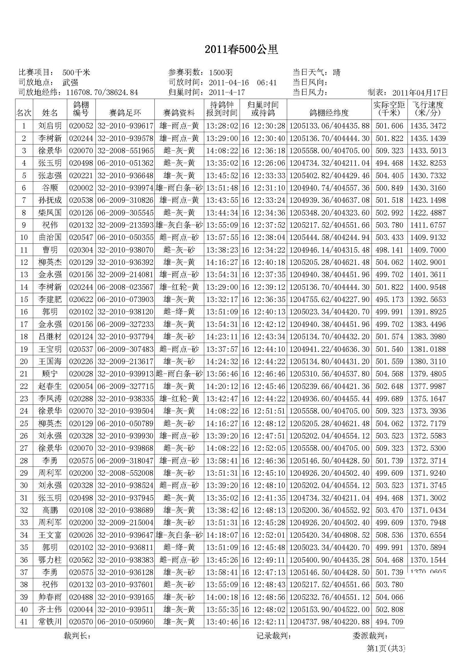 2011春500公里普赛1