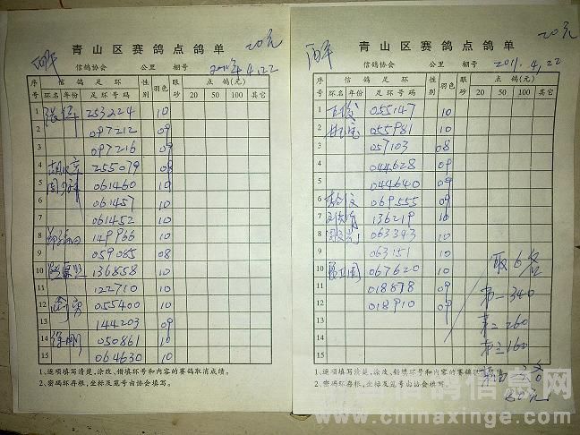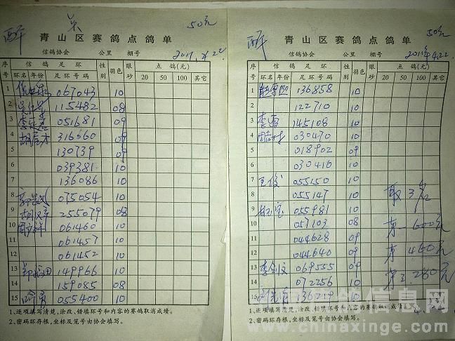 武汉市洪山区信鸽协会西平竞赛集鸽总羽数及指定鸽名单