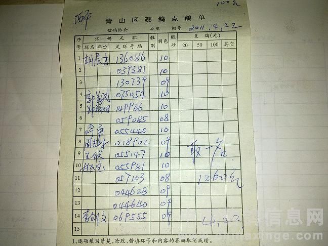 武汉市洪山区信鸽协会漯河竞赛取消名次初榜