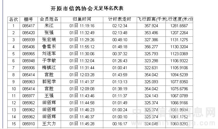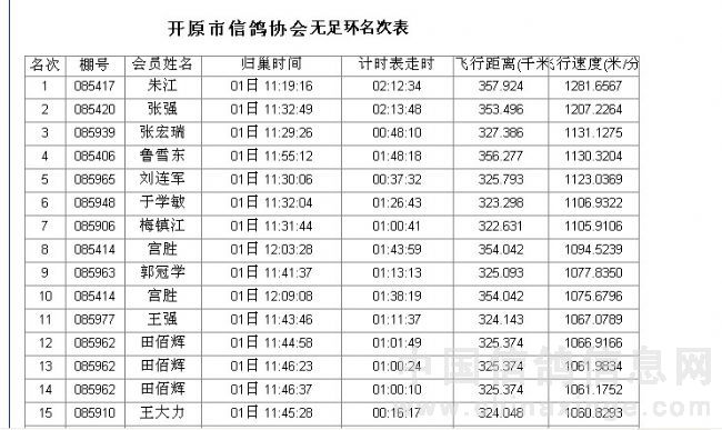 开原市信鸽协会2022年至2023年会员比赛鸽舍+空距坐标!