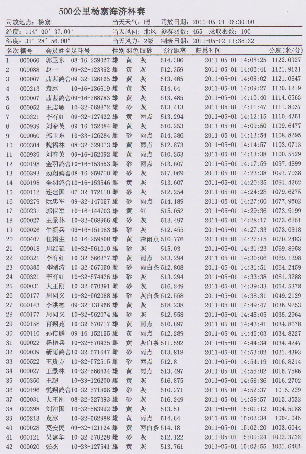 注明:本场团体成绩核算以会员当日归巢羽数及比赛成绩统计,次日归巢赛鸽不核计团体成绩。
