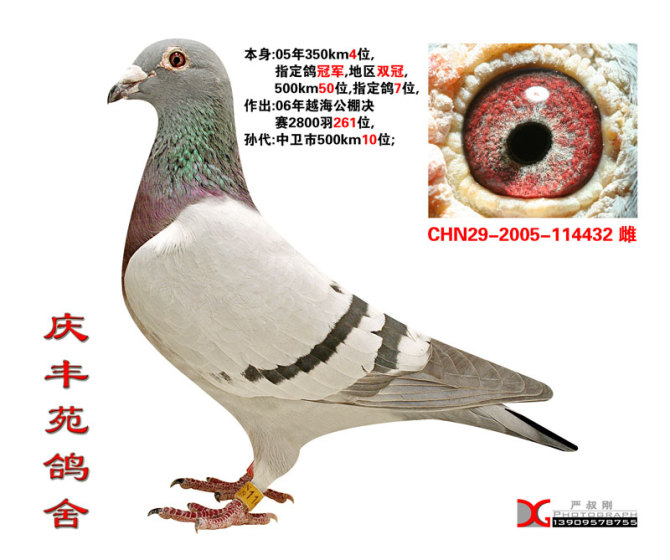 2005年望远350公里.此鸽获冠军和指定冠军.
