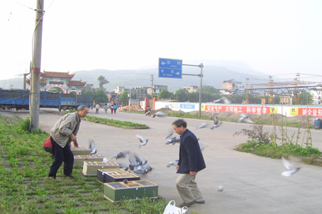 2008年4月30日雅安竞翔赛。雅安市信鸽协会主席、秘书长及裁判亲临现场验鸽、并监督放飞。