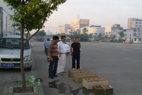 2008年7月6日新津竞翔赛。新津县信鸽协会主席及裁判亲临现场验鸽、并监督放飞。
