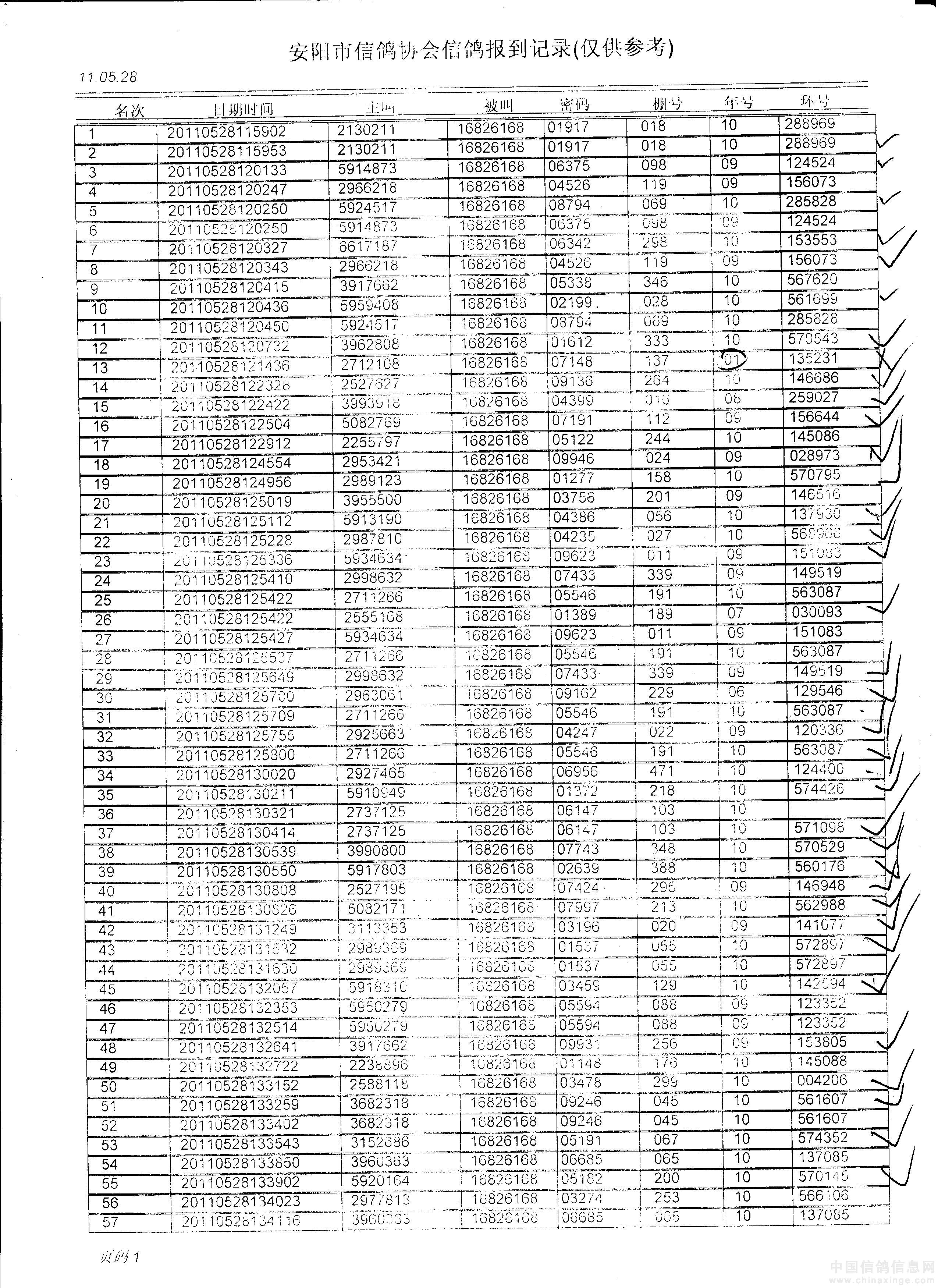 2021秋安阳市信鸽协会500公里大悟站成绩明细(临时)101-150