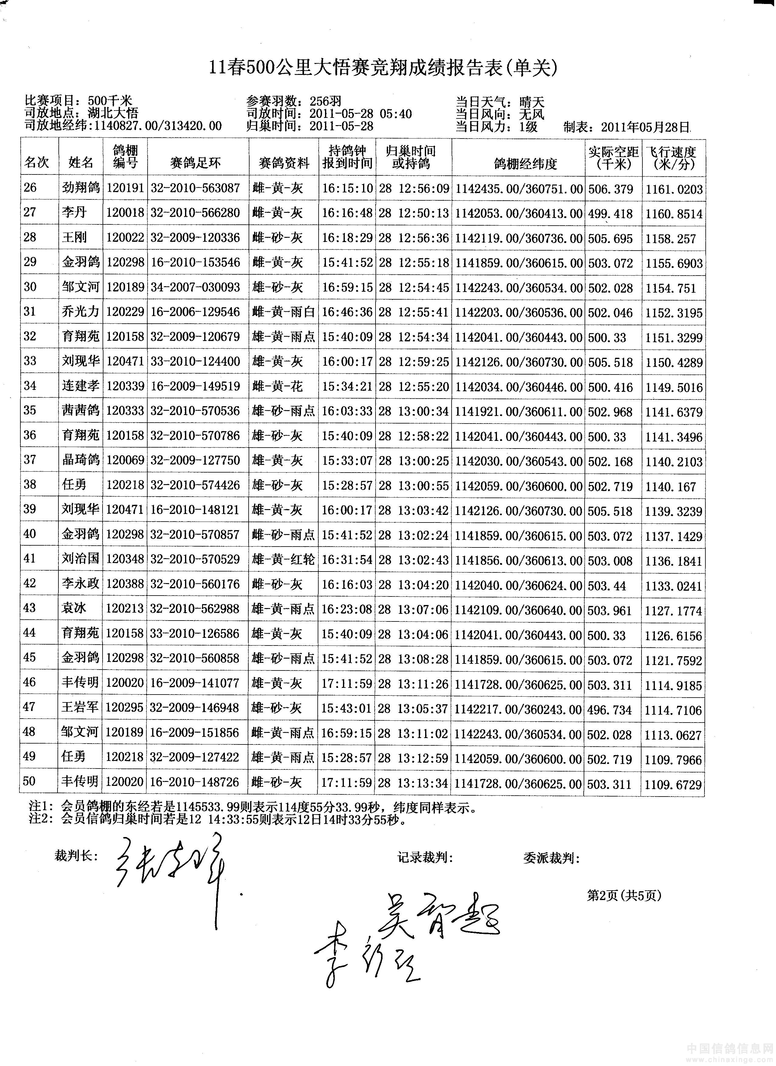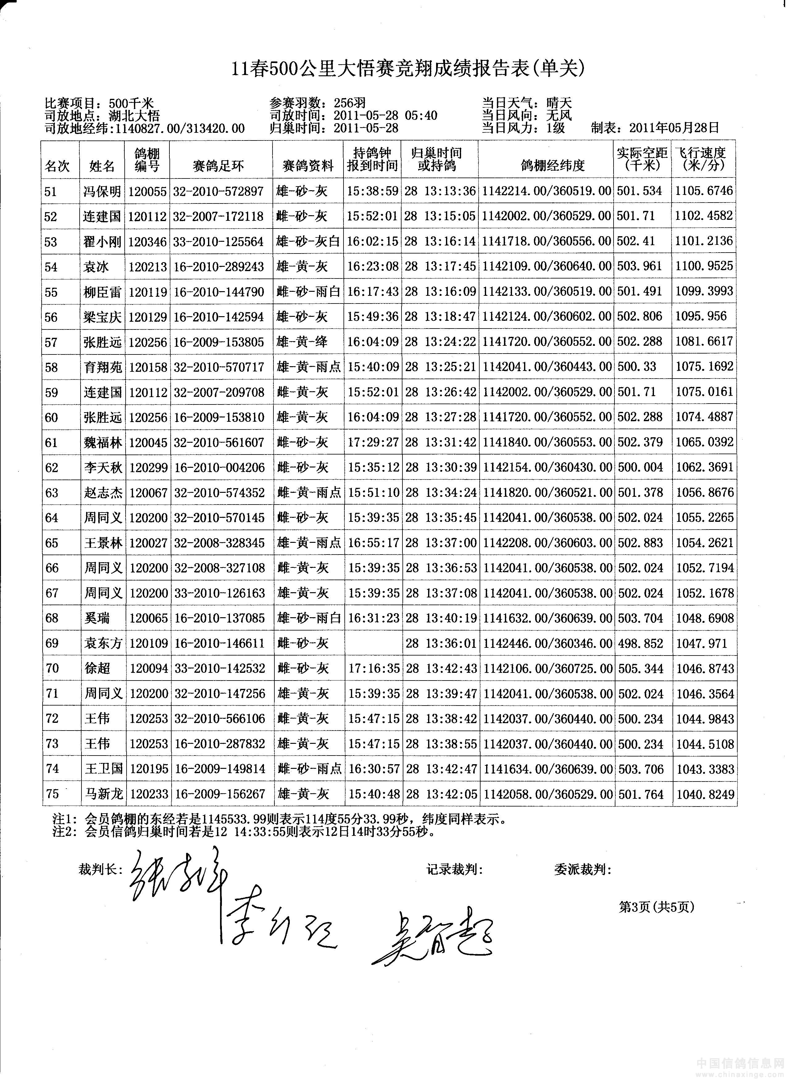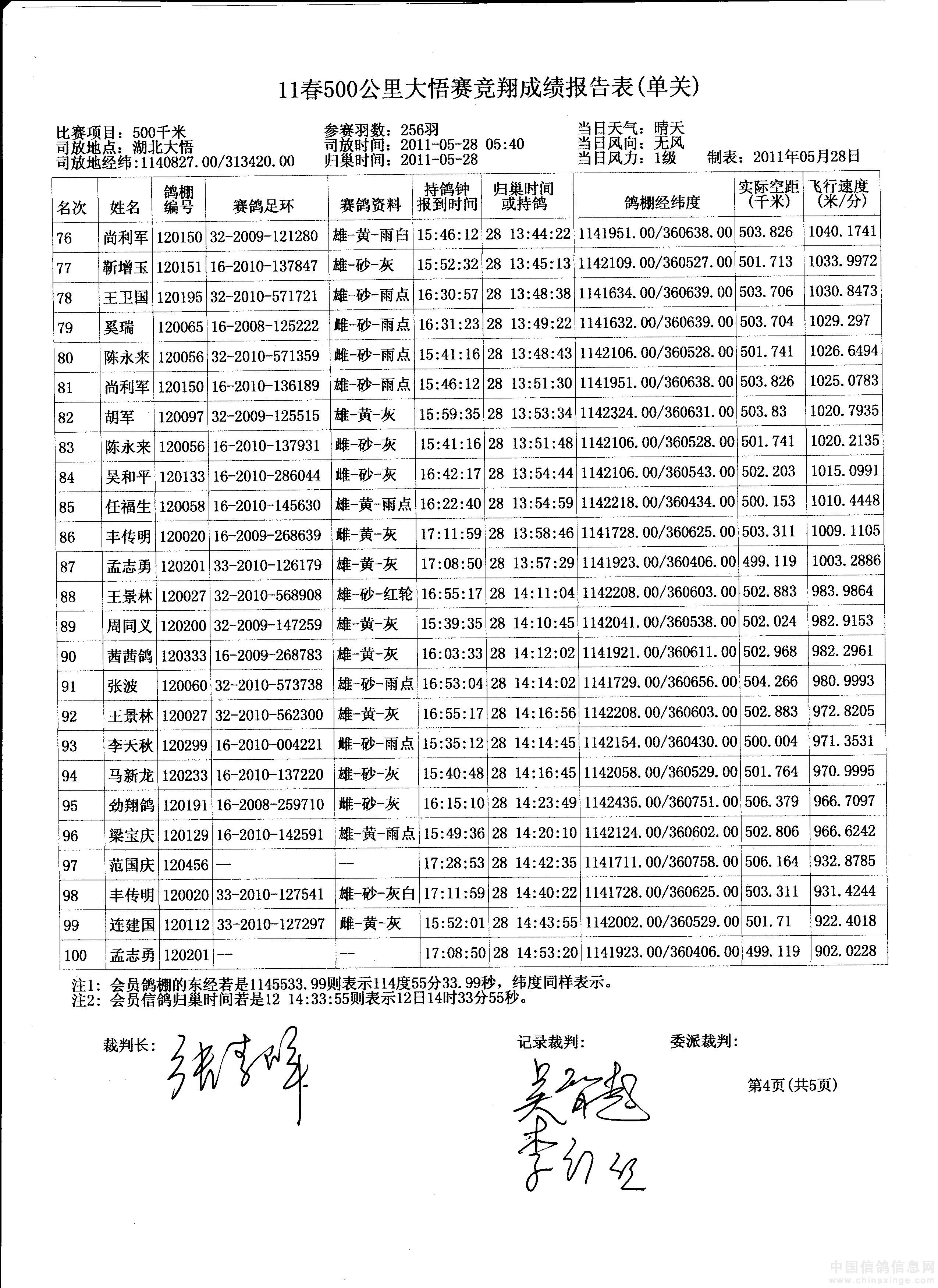 2021秋安阳市信鸽协会500公里大悟站成绩明细(临时)1-100