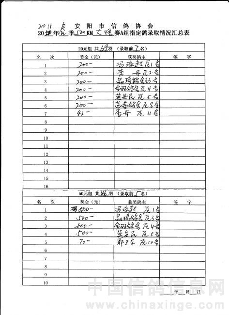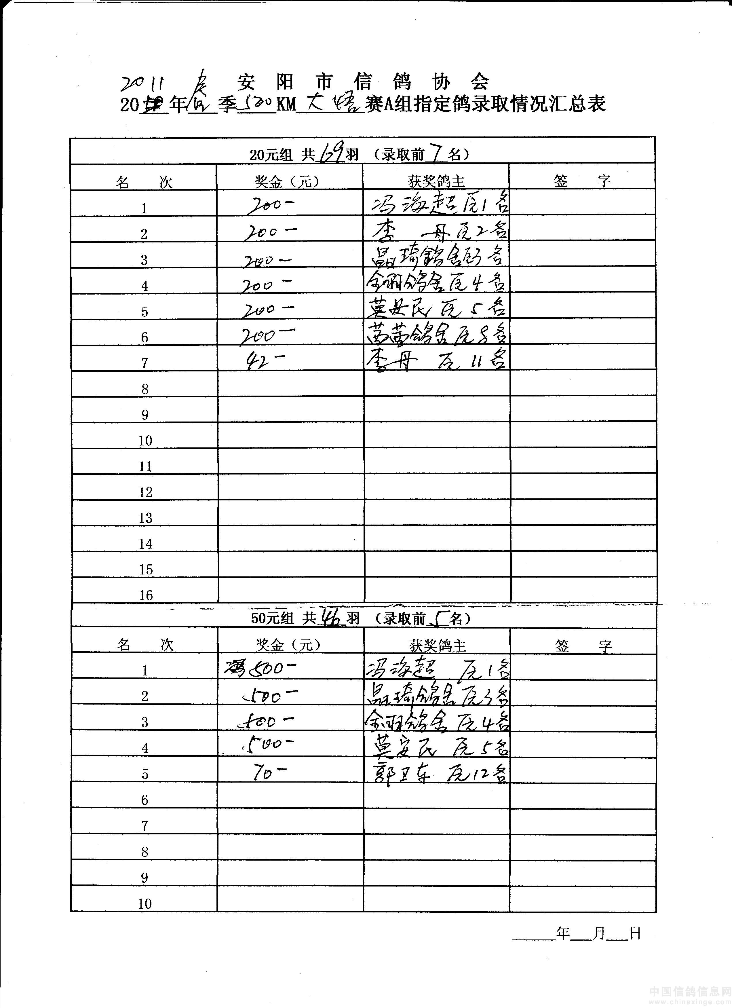 2021秋安阳市信鸽协会500公里大悟站成绩明细(临时)1-100