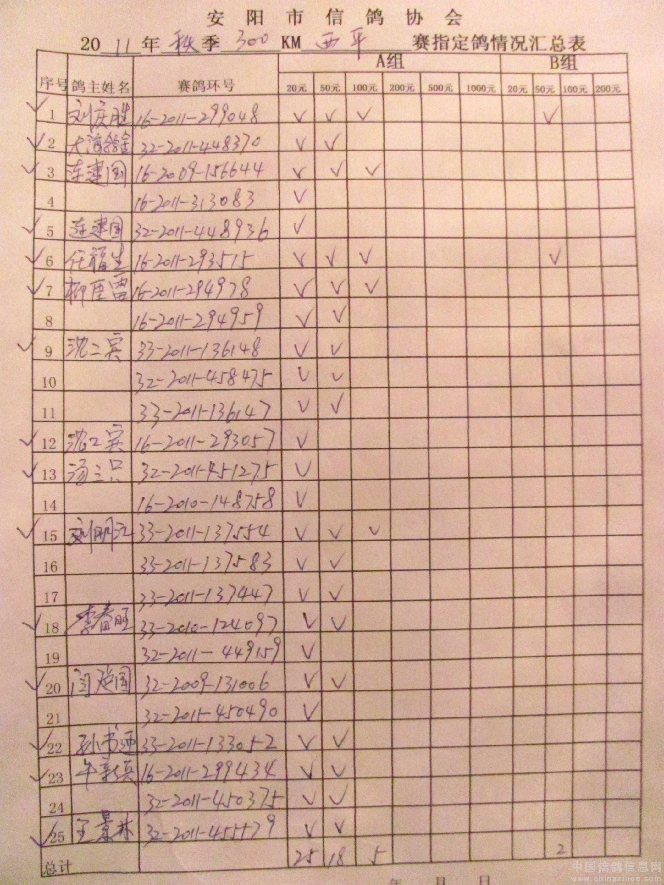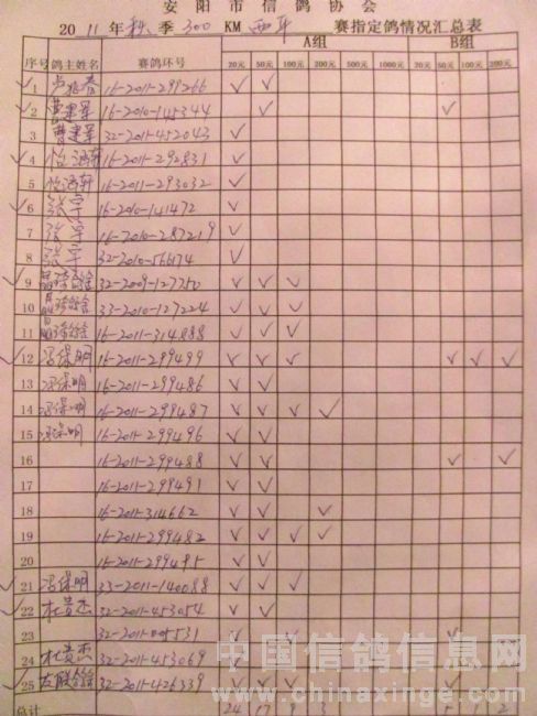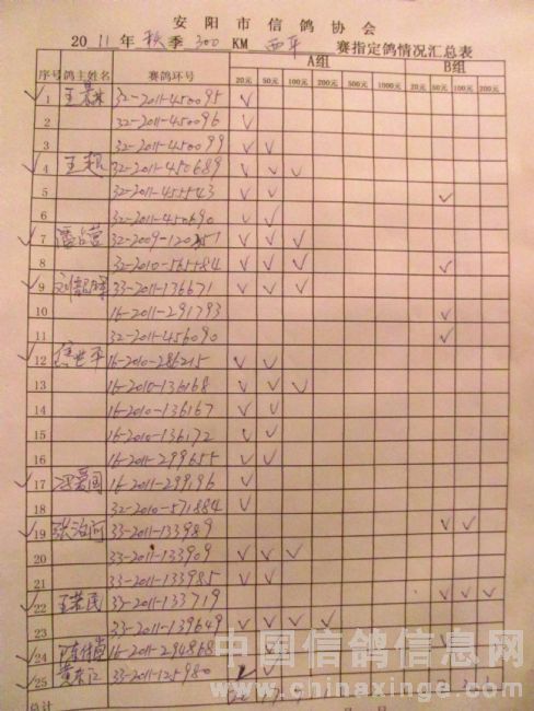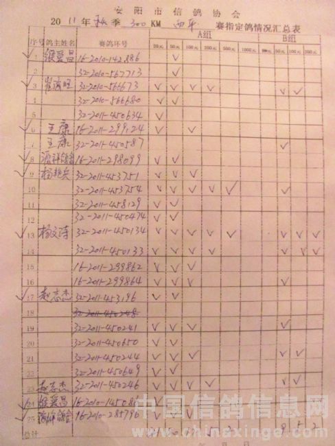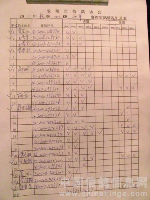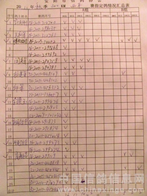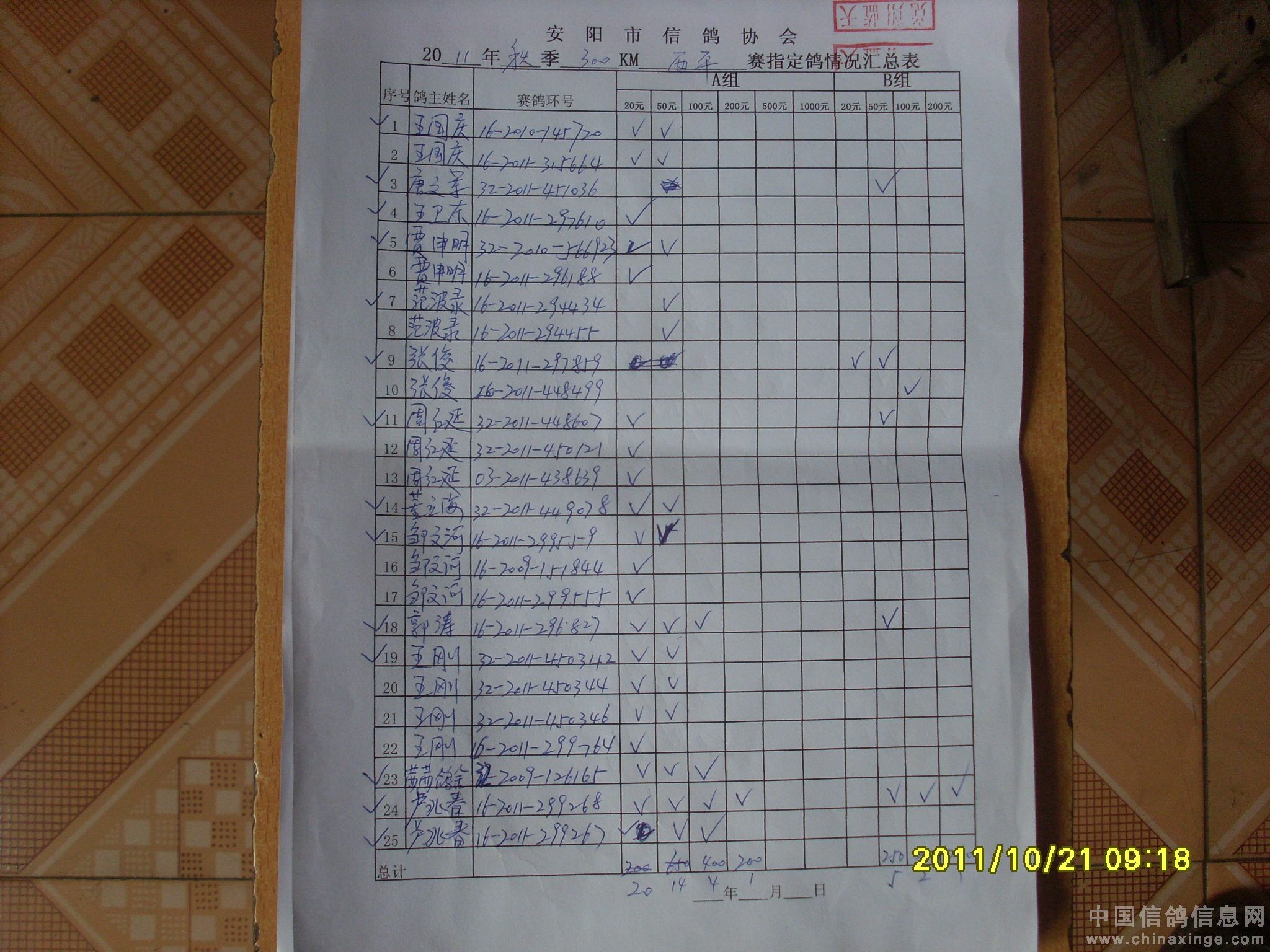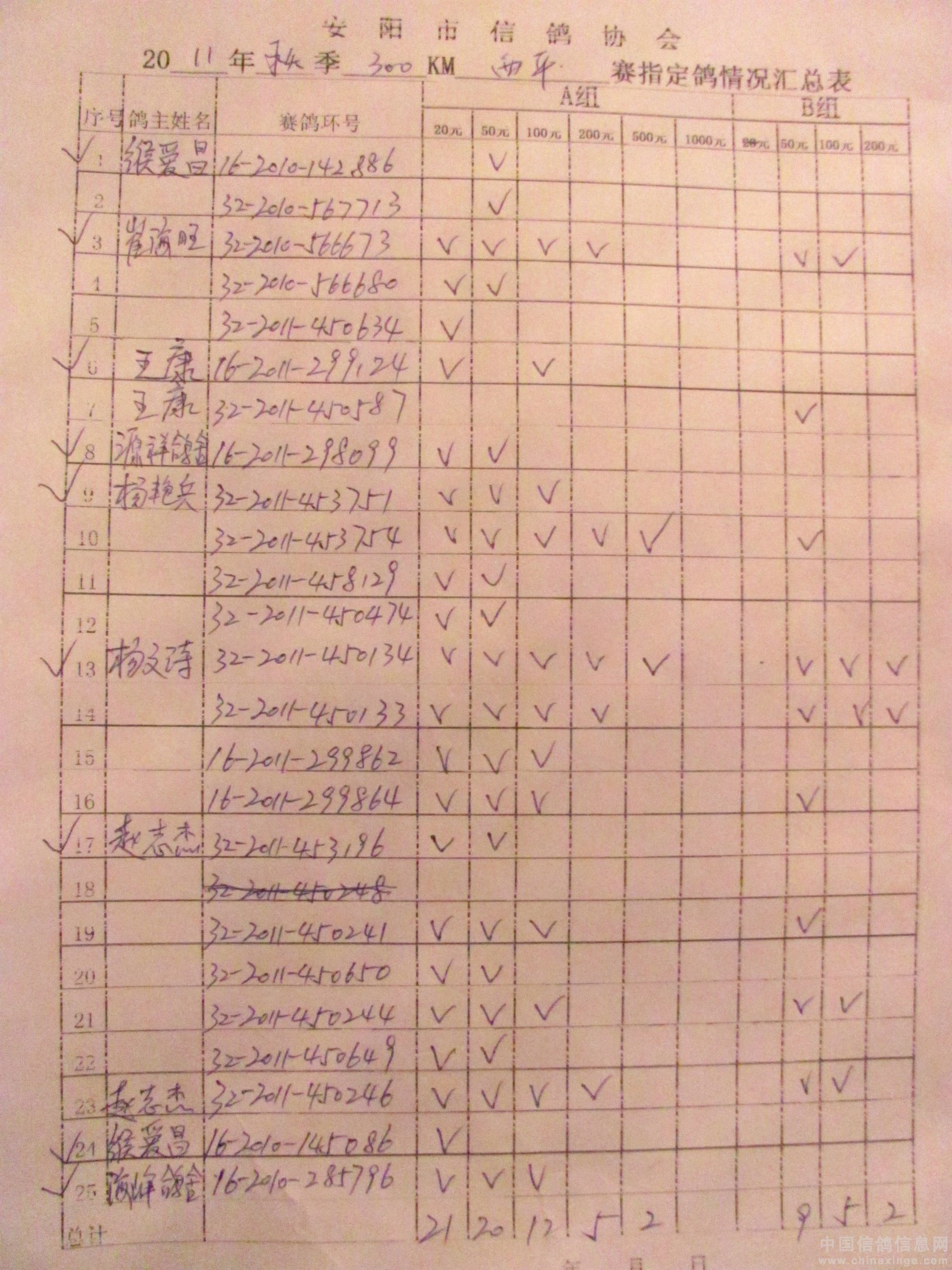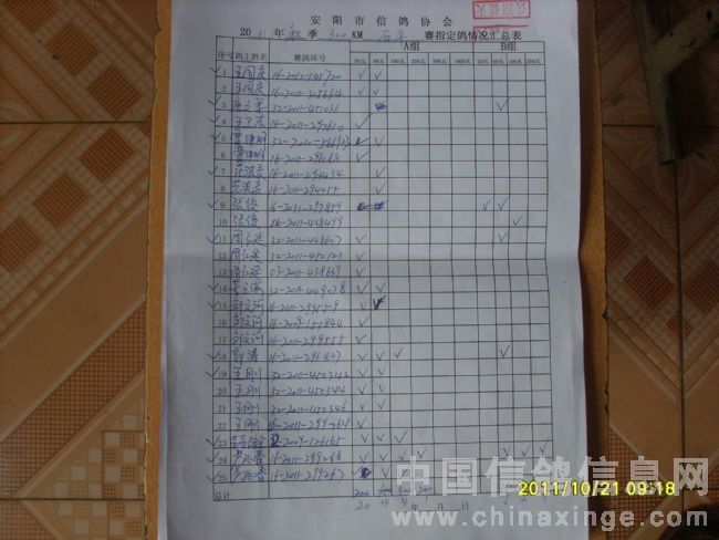 2021秋安阳市信鸽协会500公里大悟站成绩明细(临时)1-100