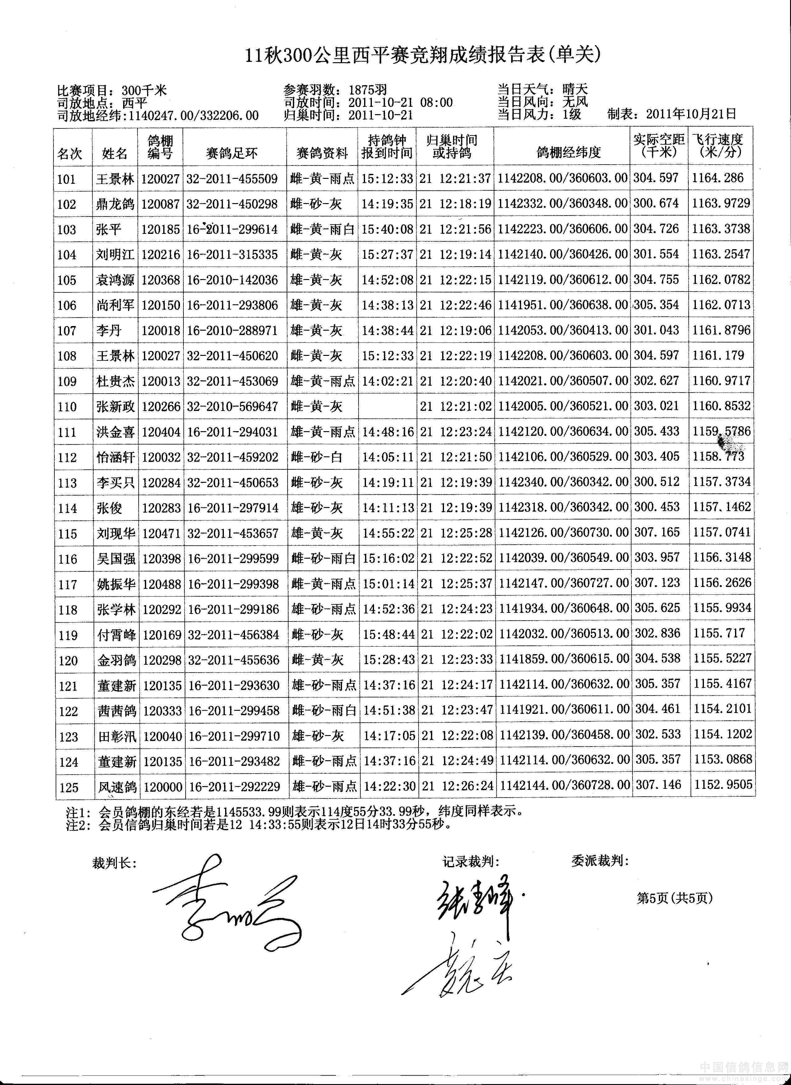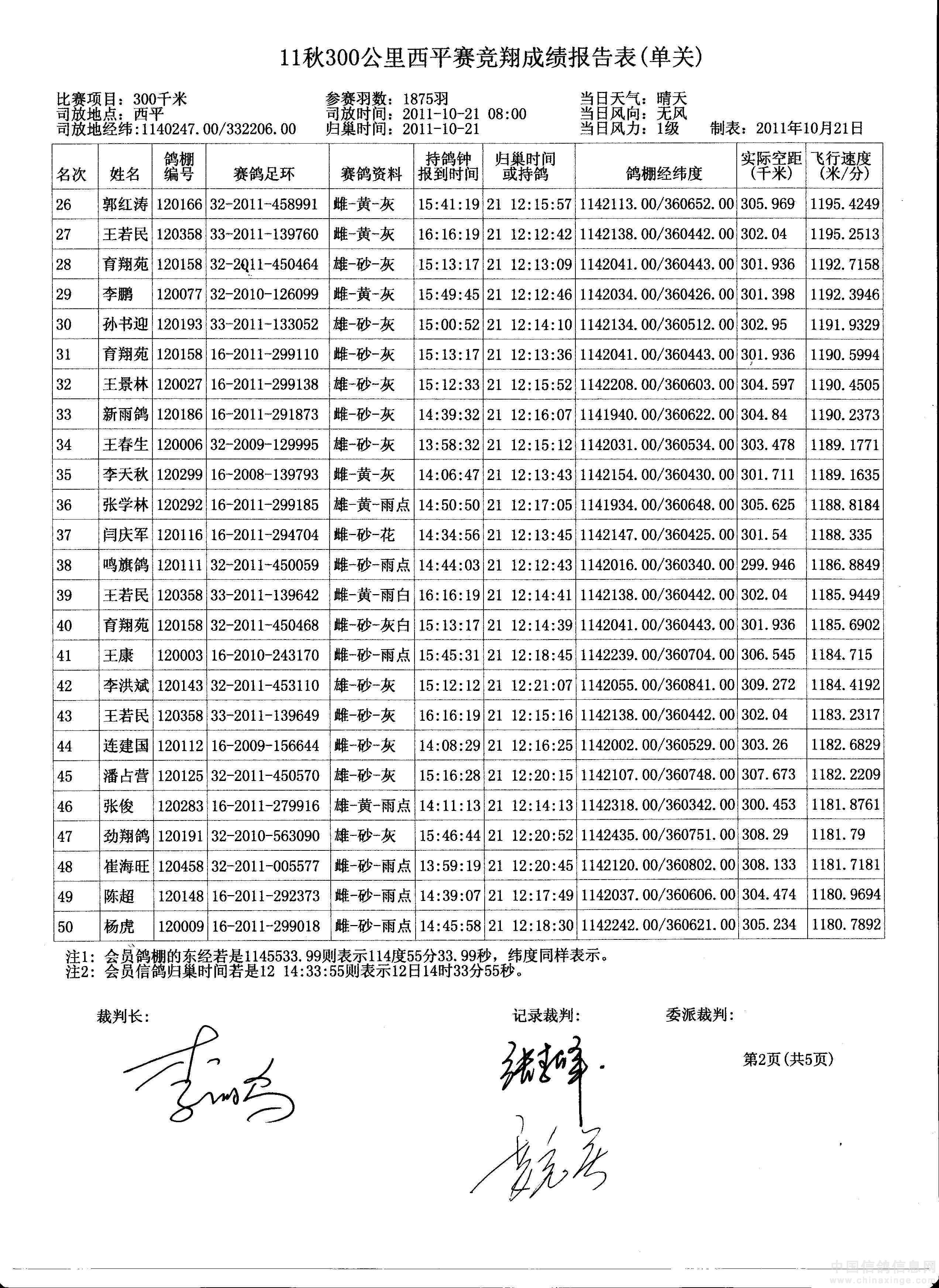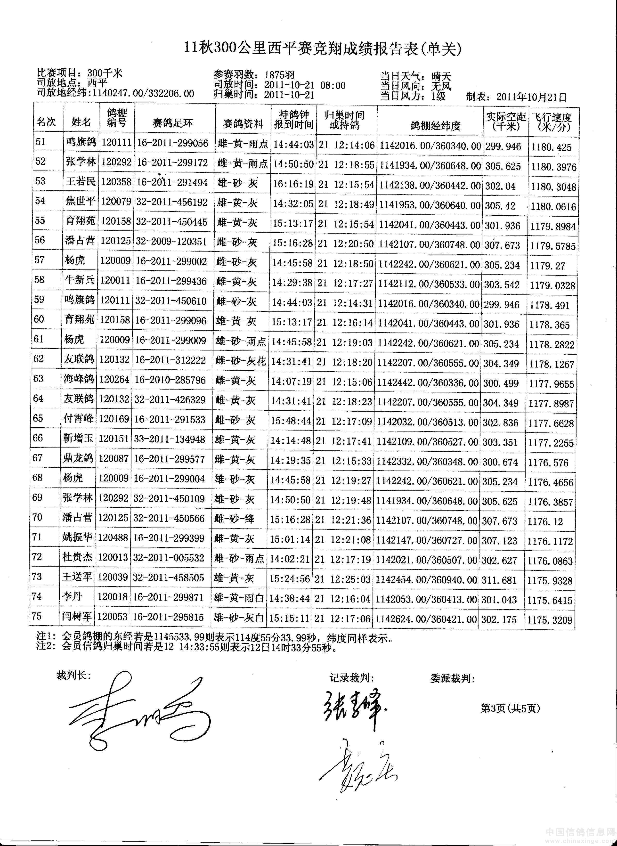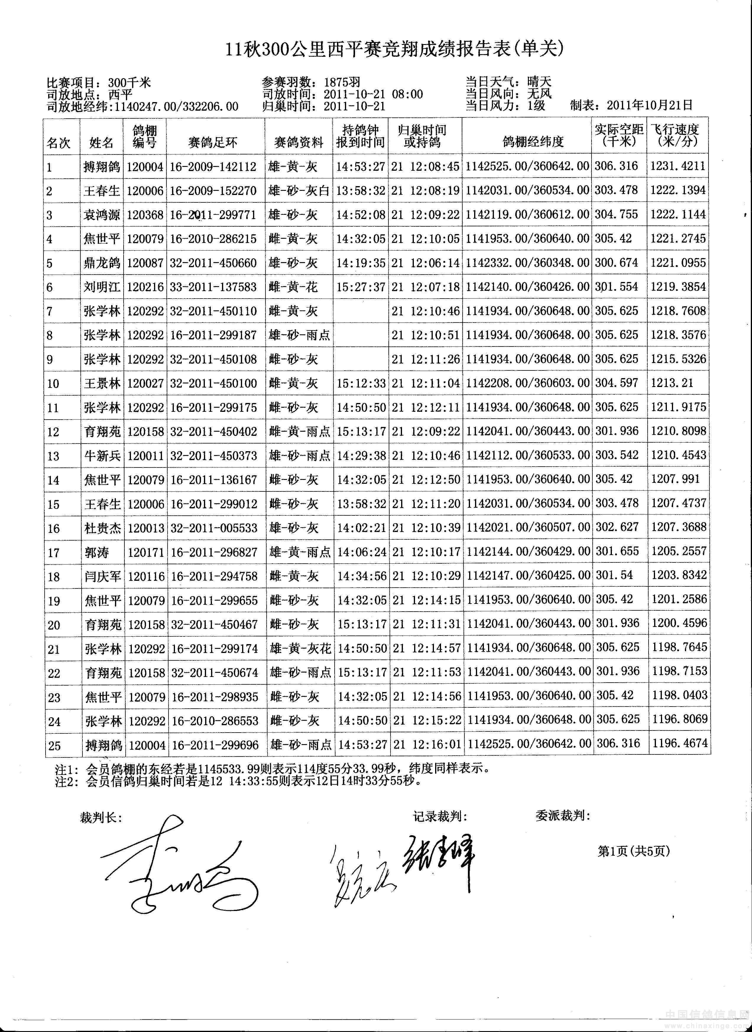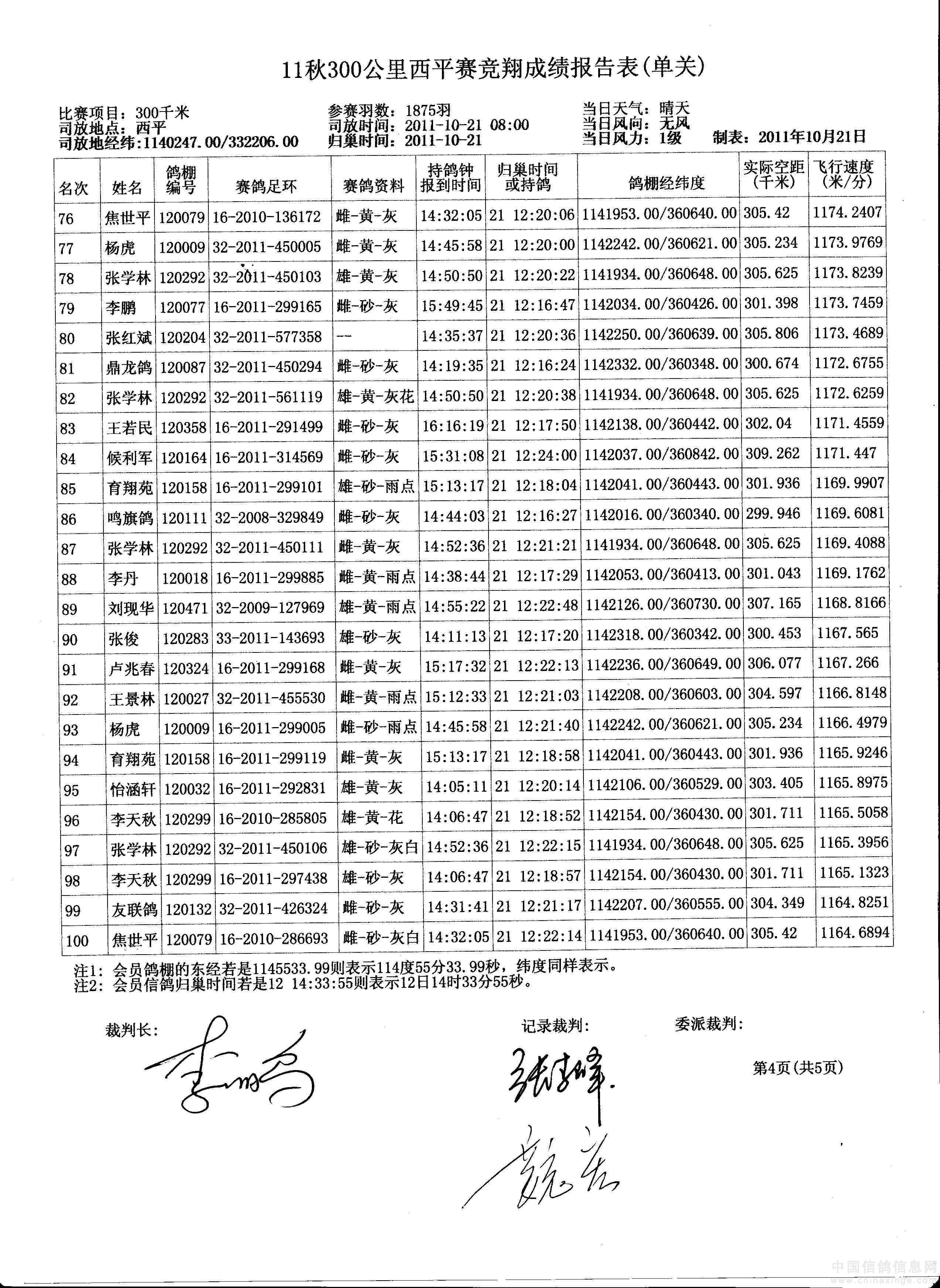 2021秋安阳市信鸽协会500公里大悟站成绩明细(临时)1-100