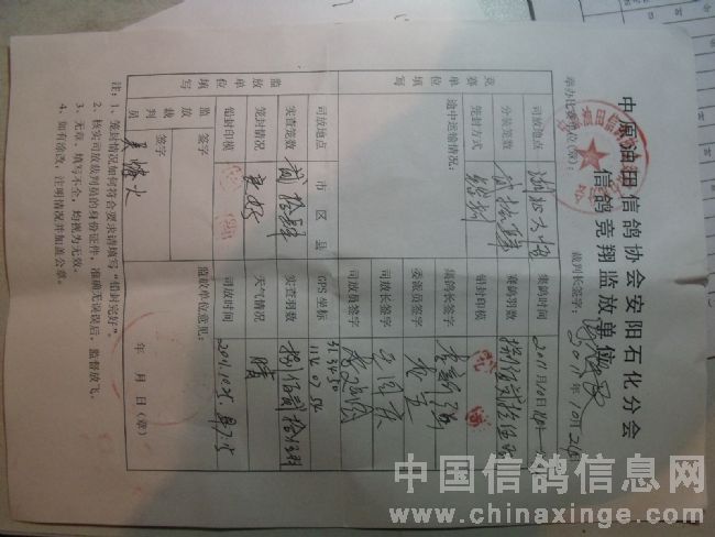 中原油田信鸽协会安阳石化分会