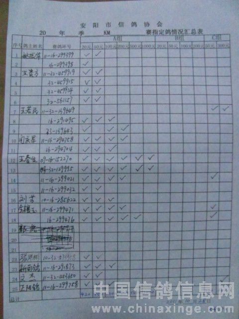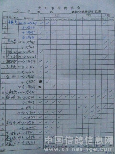 2021秋安阳市信鸽协会500公里大悟站成绩明细(临时)101-150
