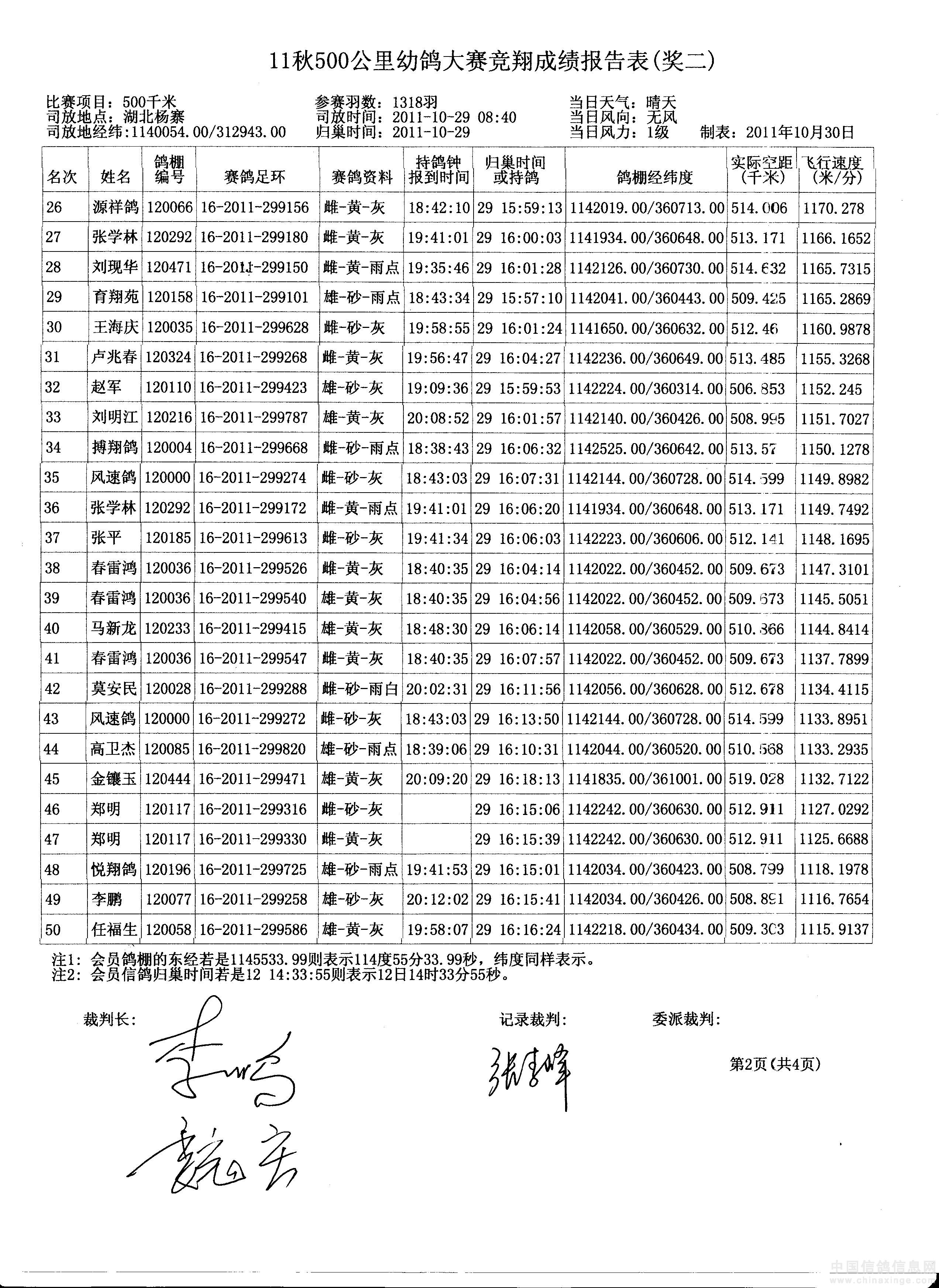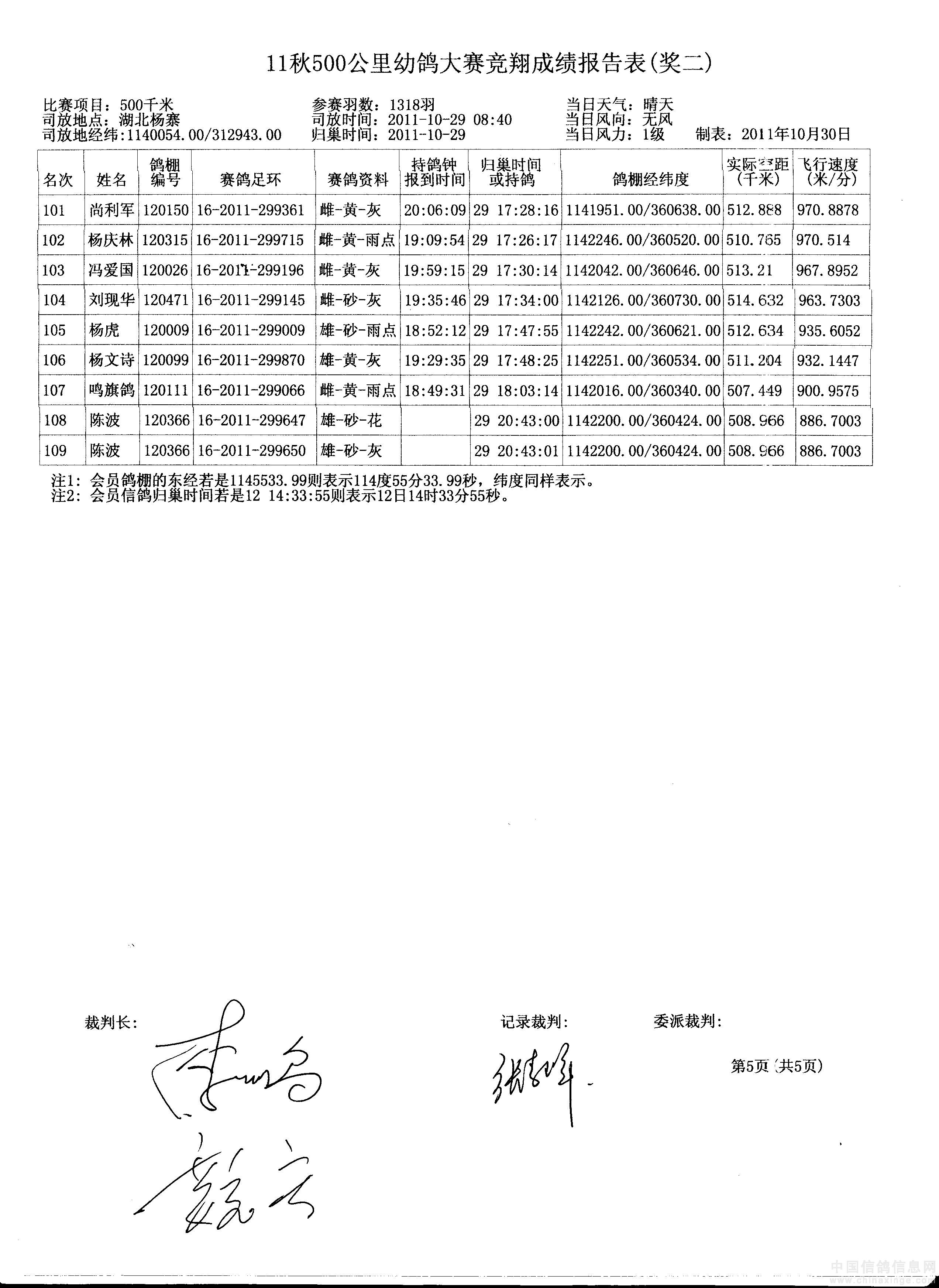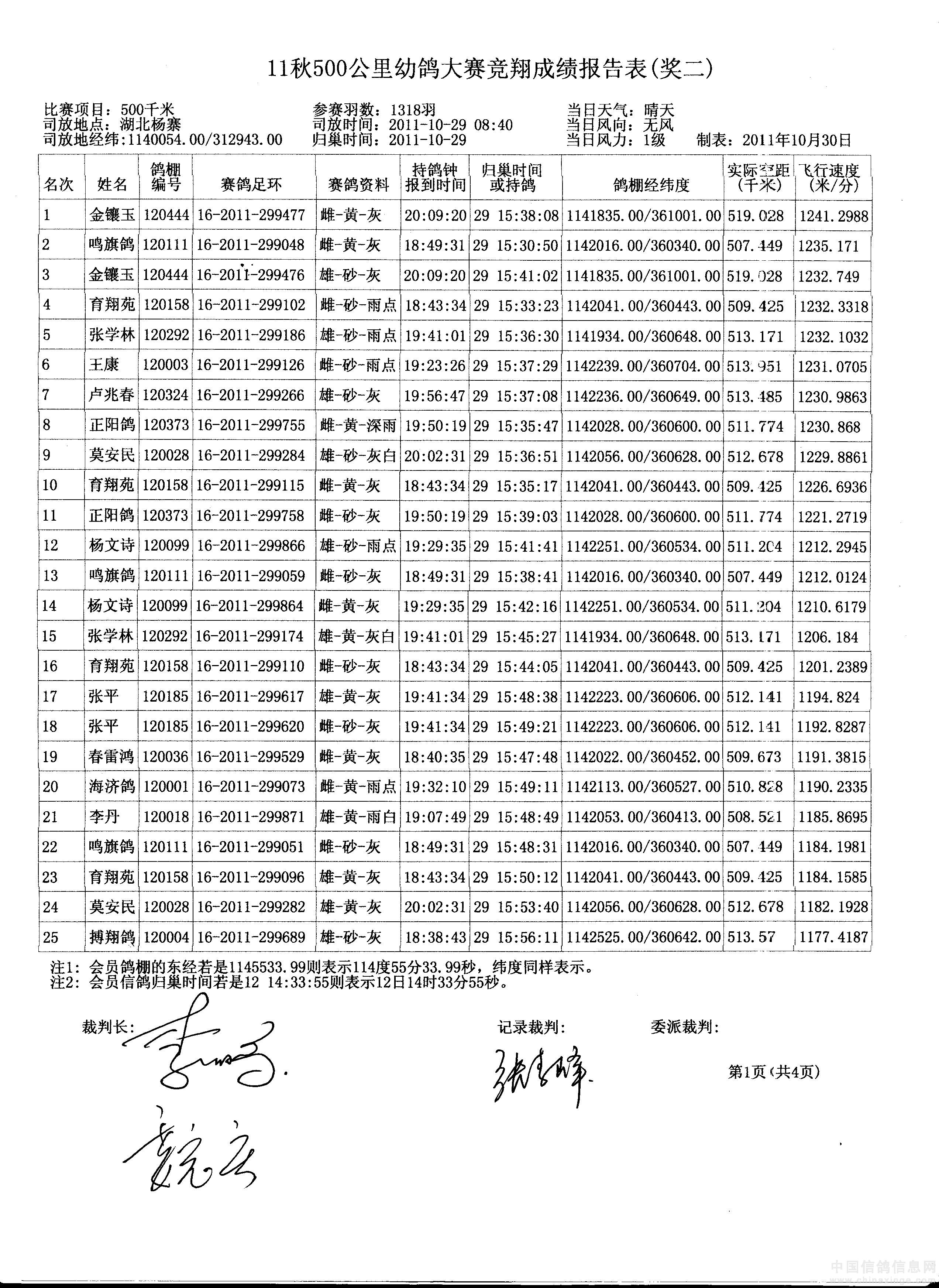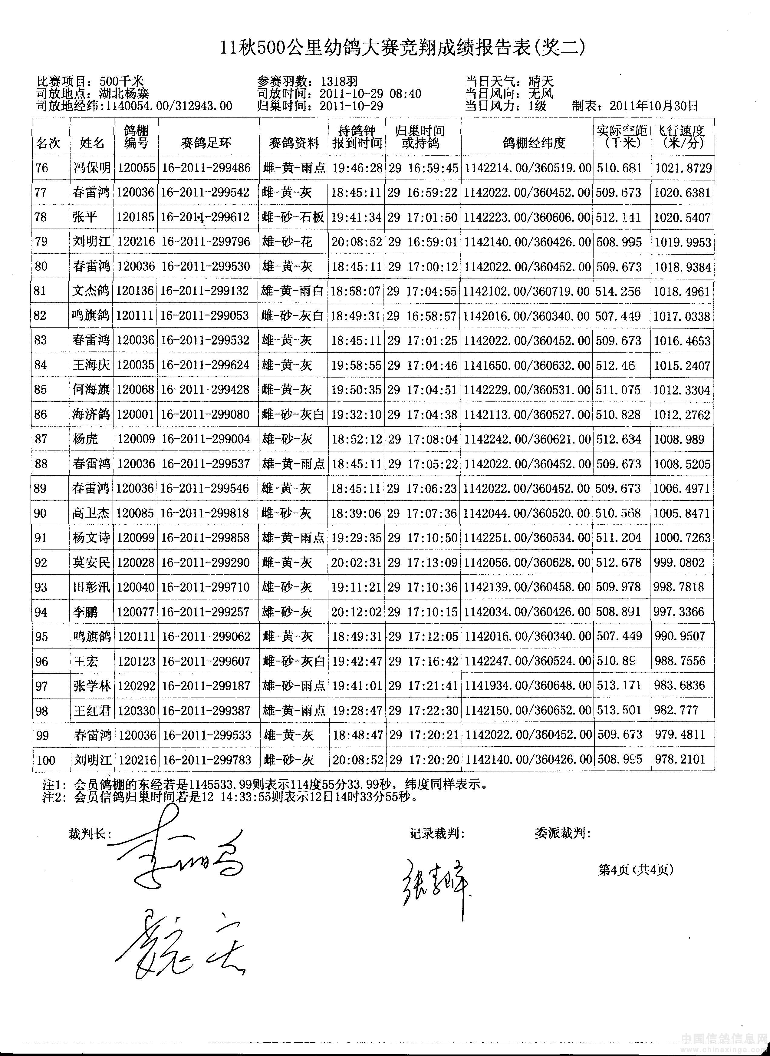 2021秋安阳市信鸽协会500公里大悟站成绩明细(临时)1-100