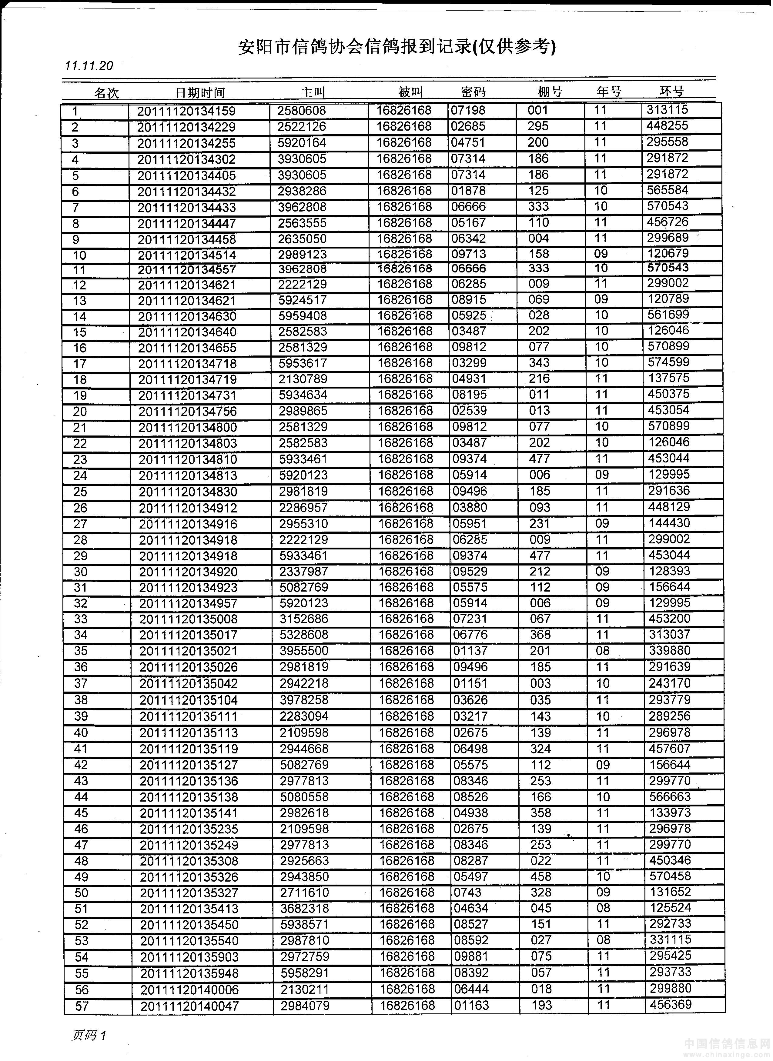 2021秋安阳市信鸽协会500公里大悟站成绩明细(临时)1-100