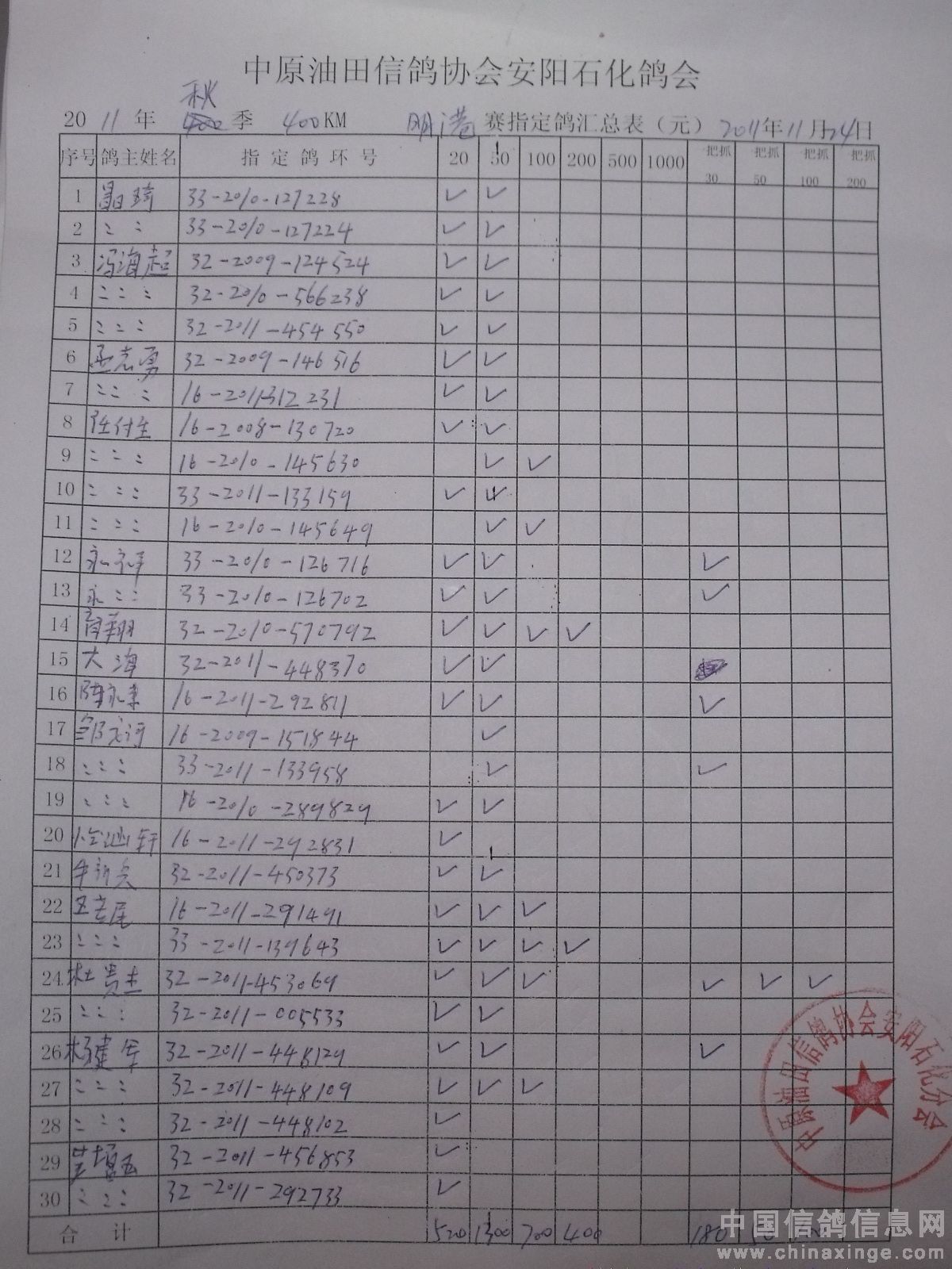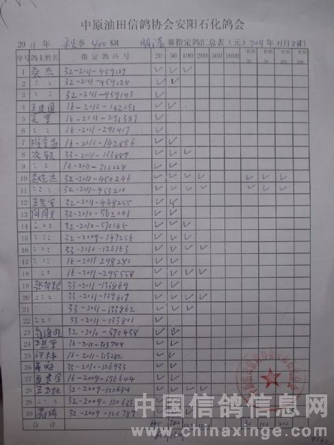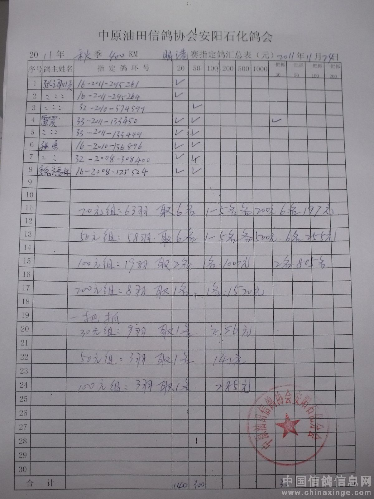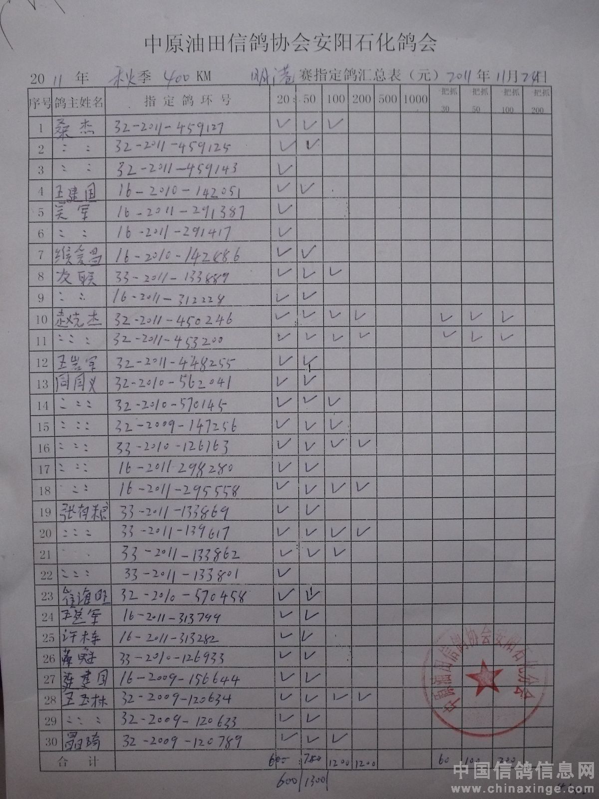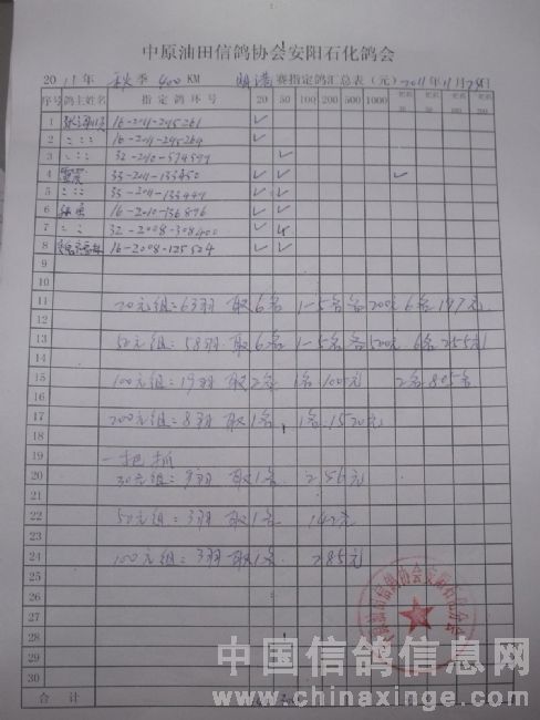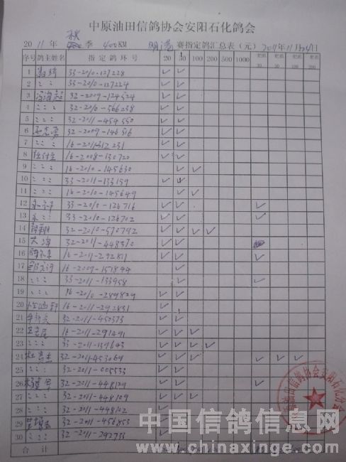 2021年秋500公里大悟大奖赛第二关成、幼鸽指定成绩