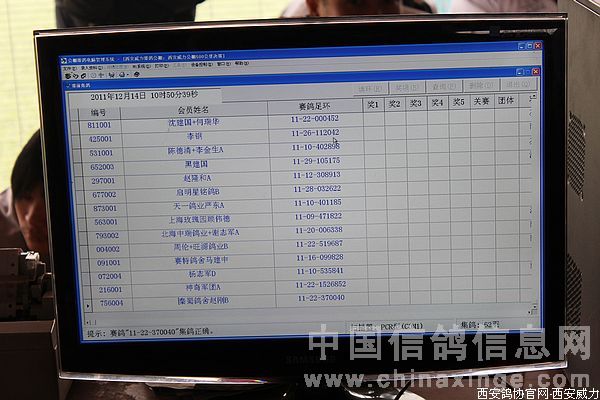 大家正在认真核对赛鸽信息