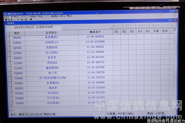 2011年12月14日中午12点50分已经集鸽入笼1789羽参赛鸽