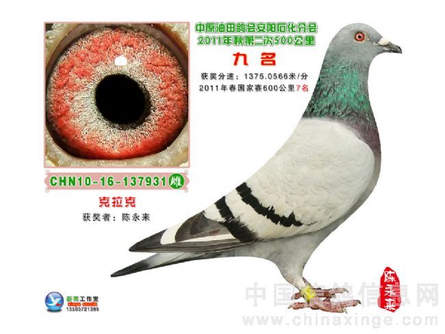 2011年秋第二次500公里前十名获奖鸽照片