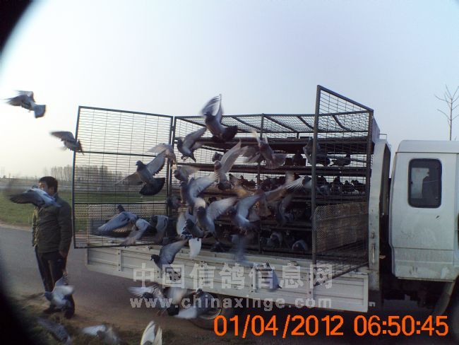 2012年4月1日早上6点50分开笼,司放地天气:晴,北风1-2级,鸽群走势良好。