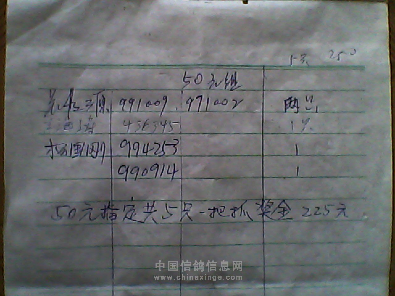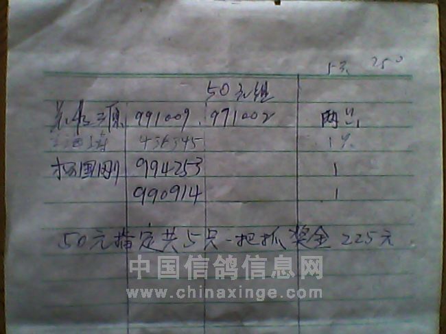 霸州市信鸽协会2025年春季500公里级国家赛成绩