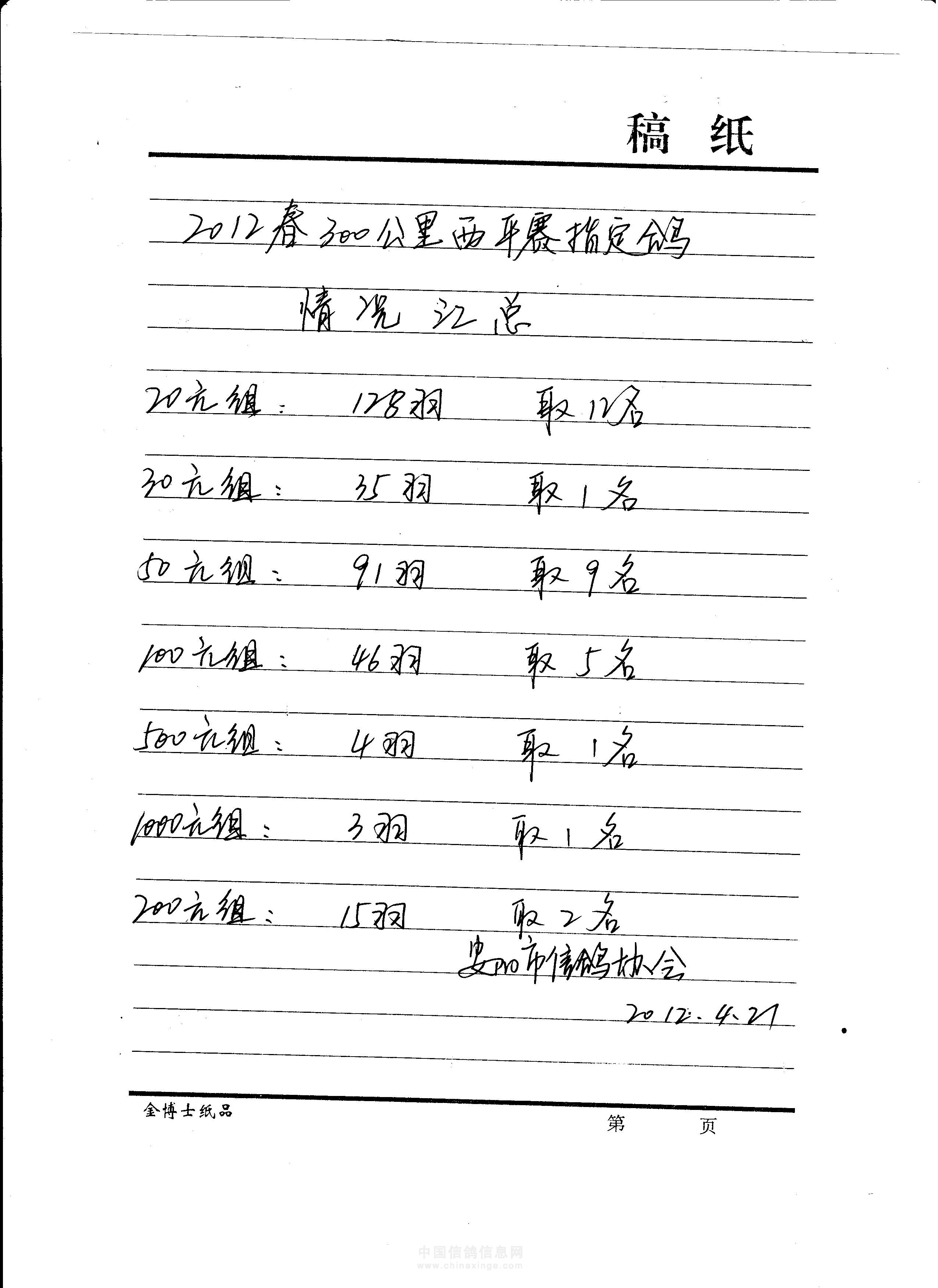 500公里大悟站前十名验鸽(汽车大奖赛冠军)(7-8)