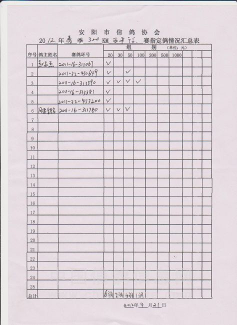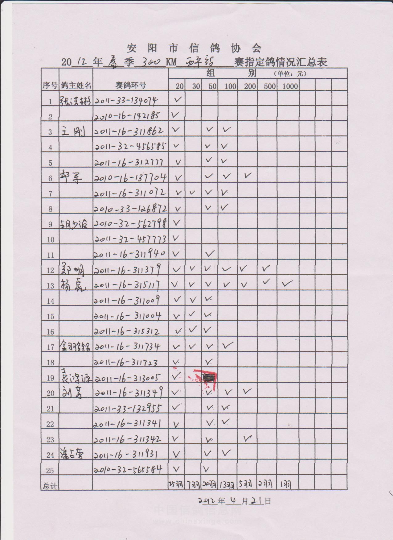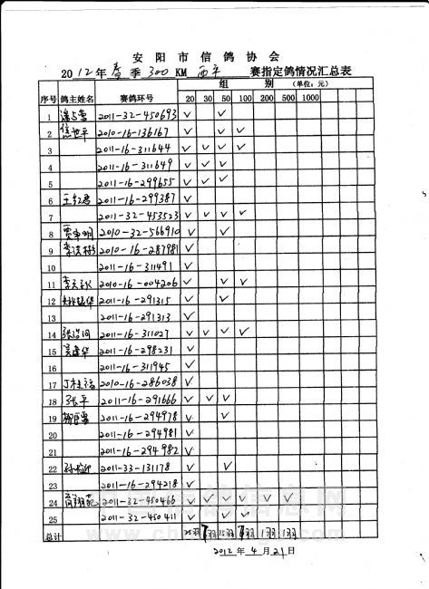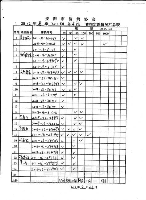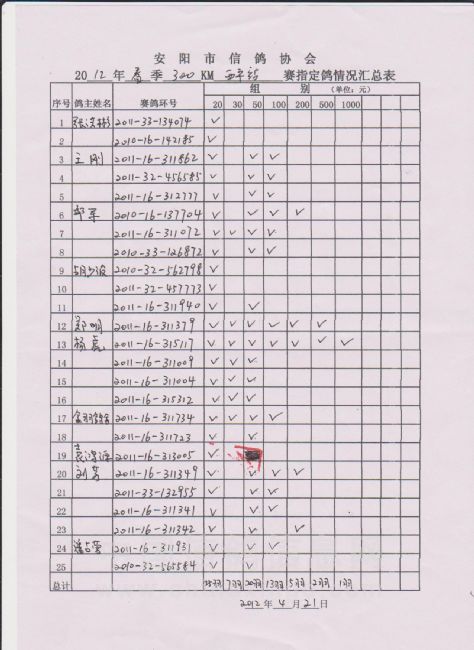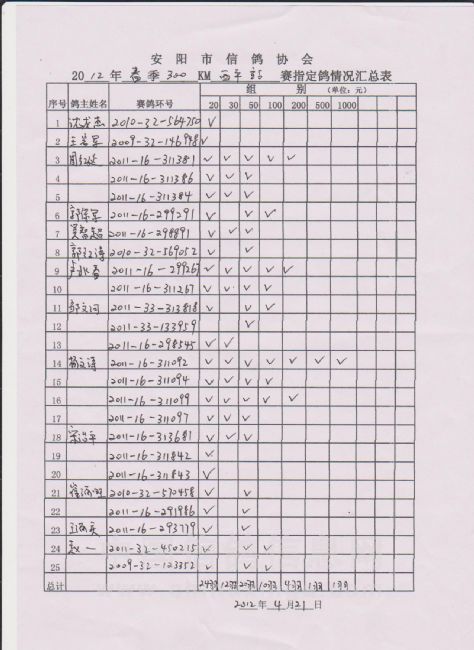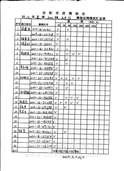 2021秋安阳市信鸽协会500公里大悟站成绩明细(临时)1-100