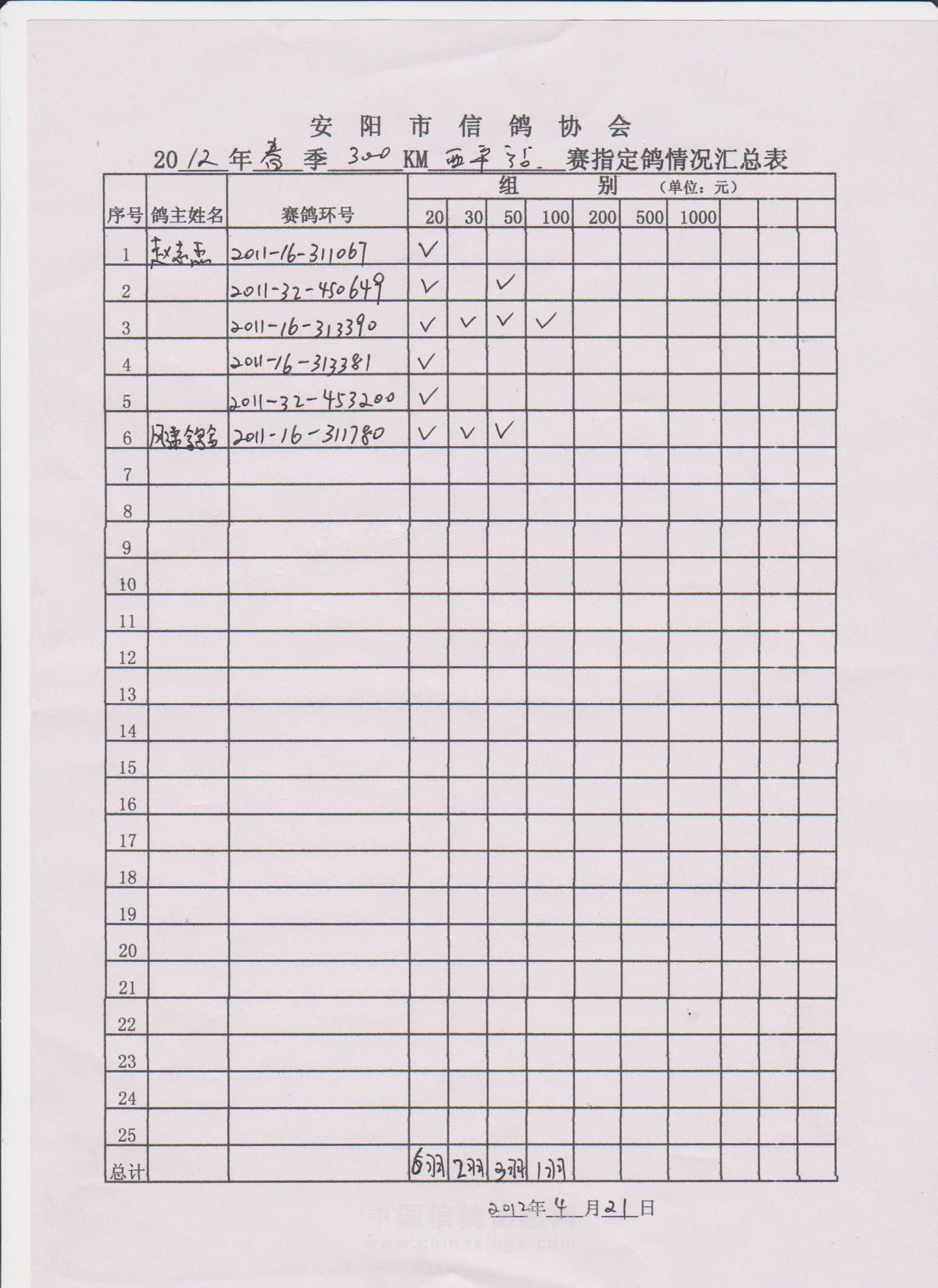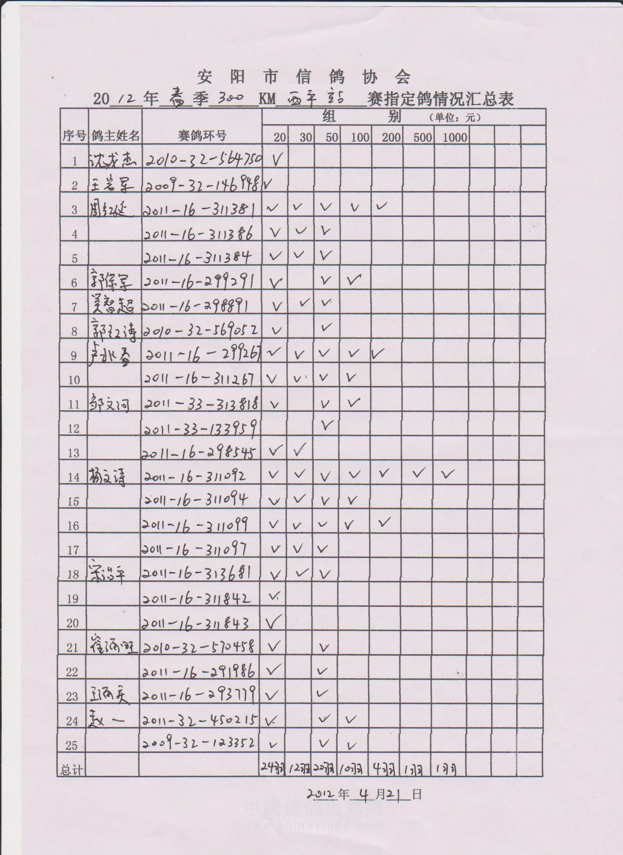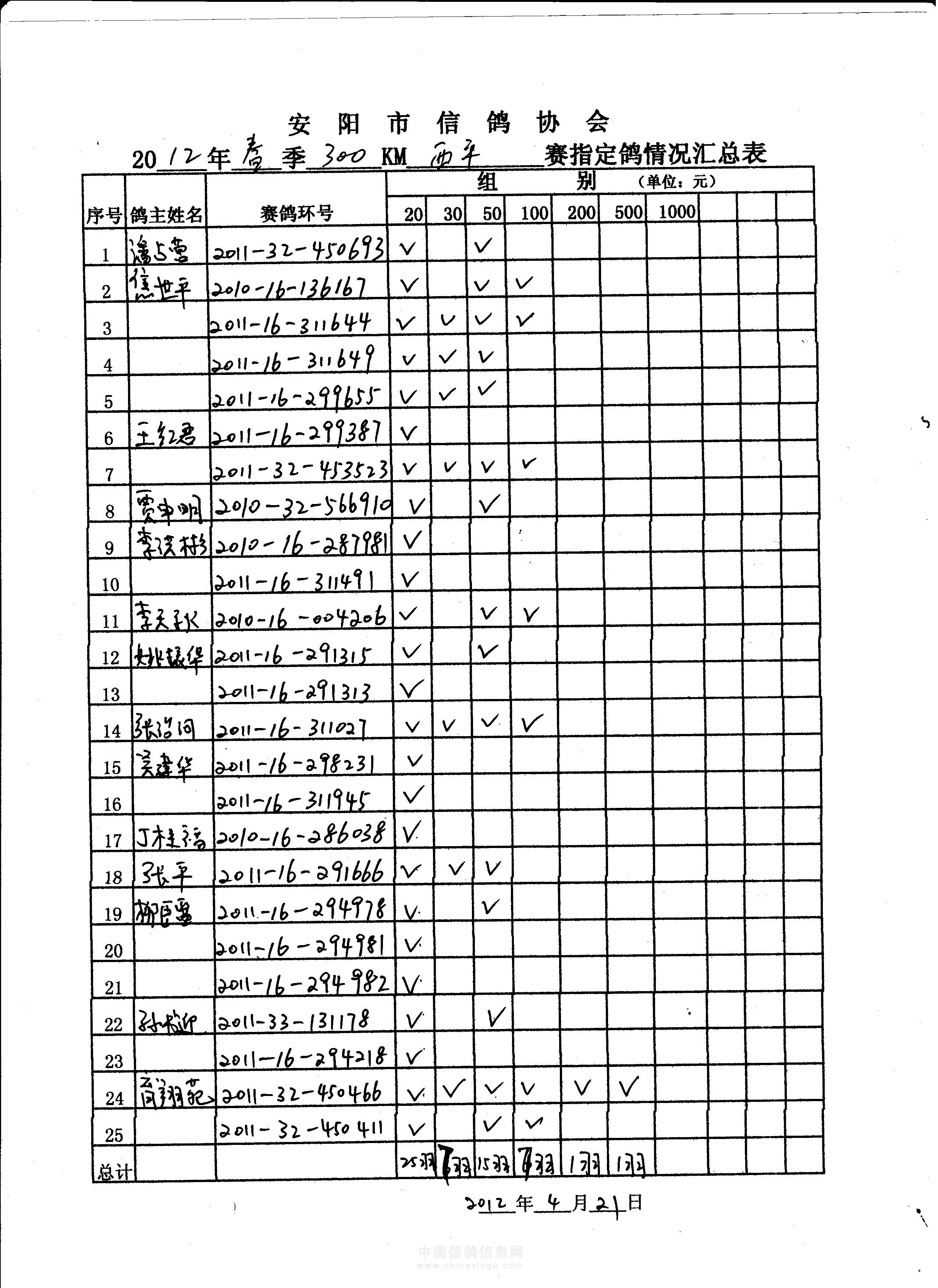 2021秋安阳市信鸽协会500公里大悟站成绩明细(临时)1-100