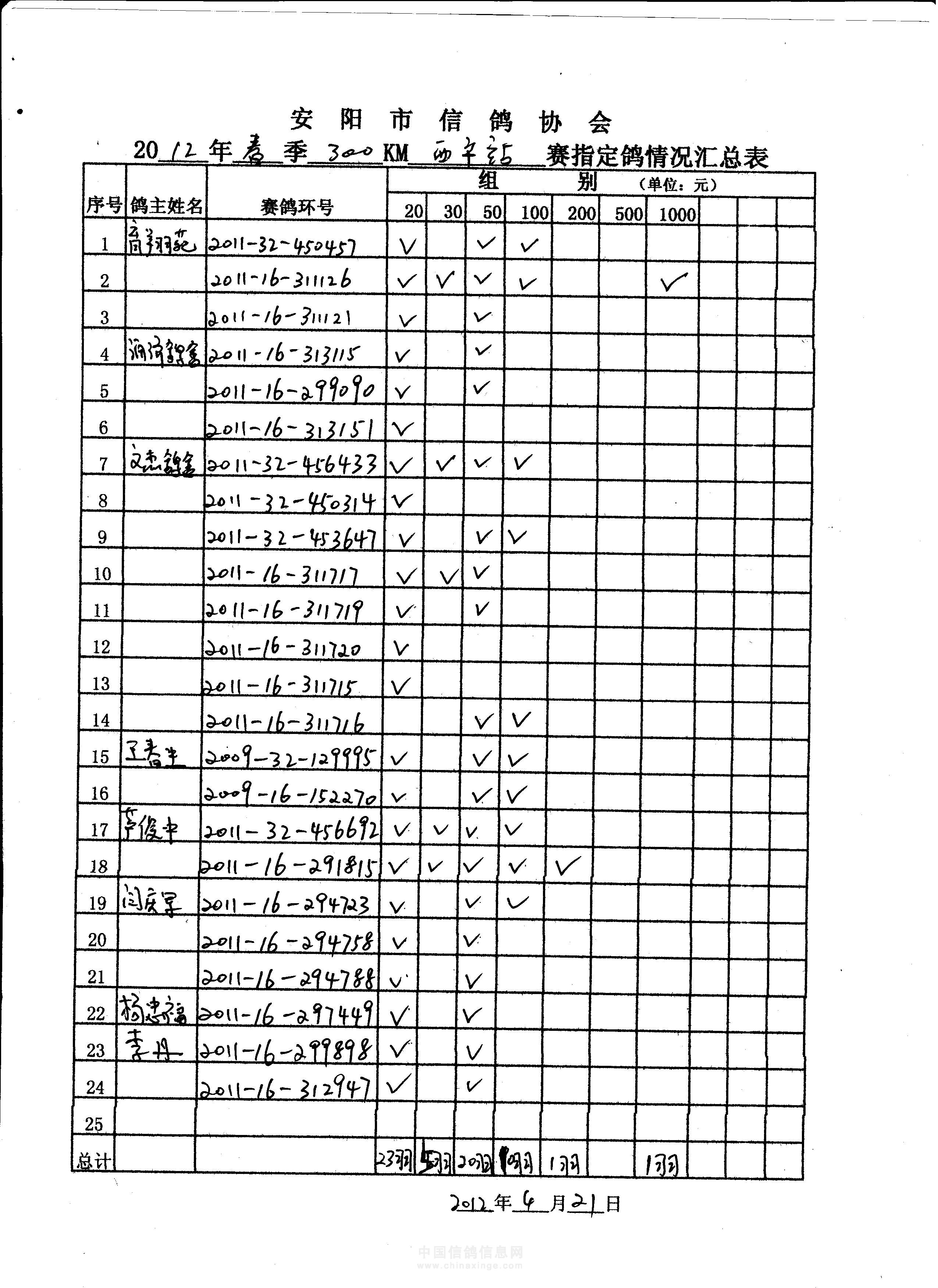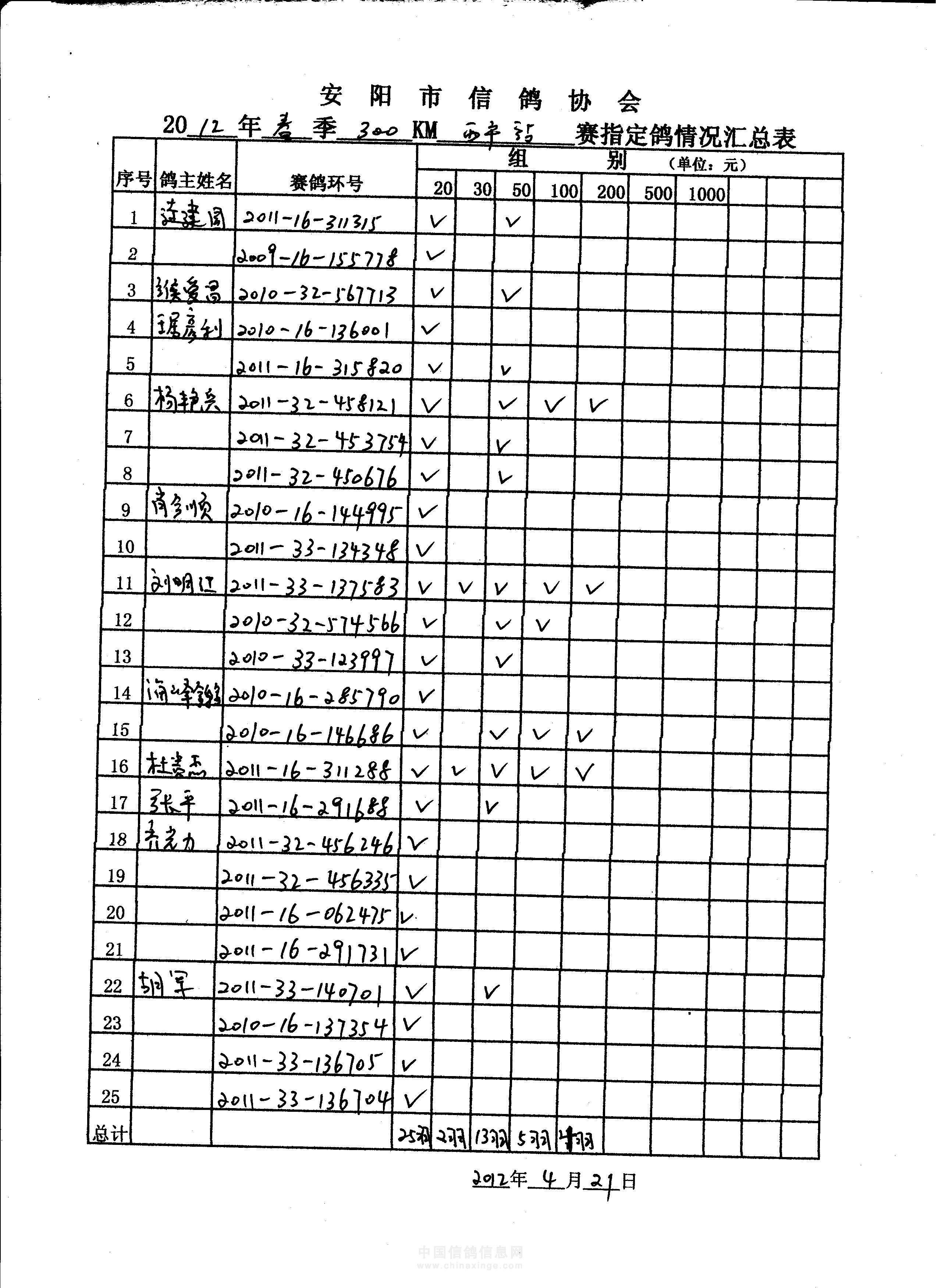 2021秋安阳市信鸽协会500公里大悟站成绩明细(临时)101-150