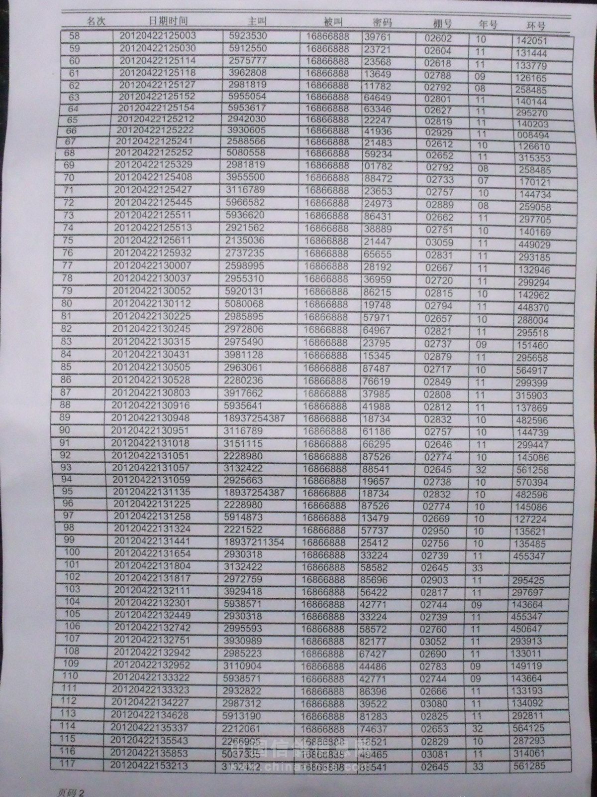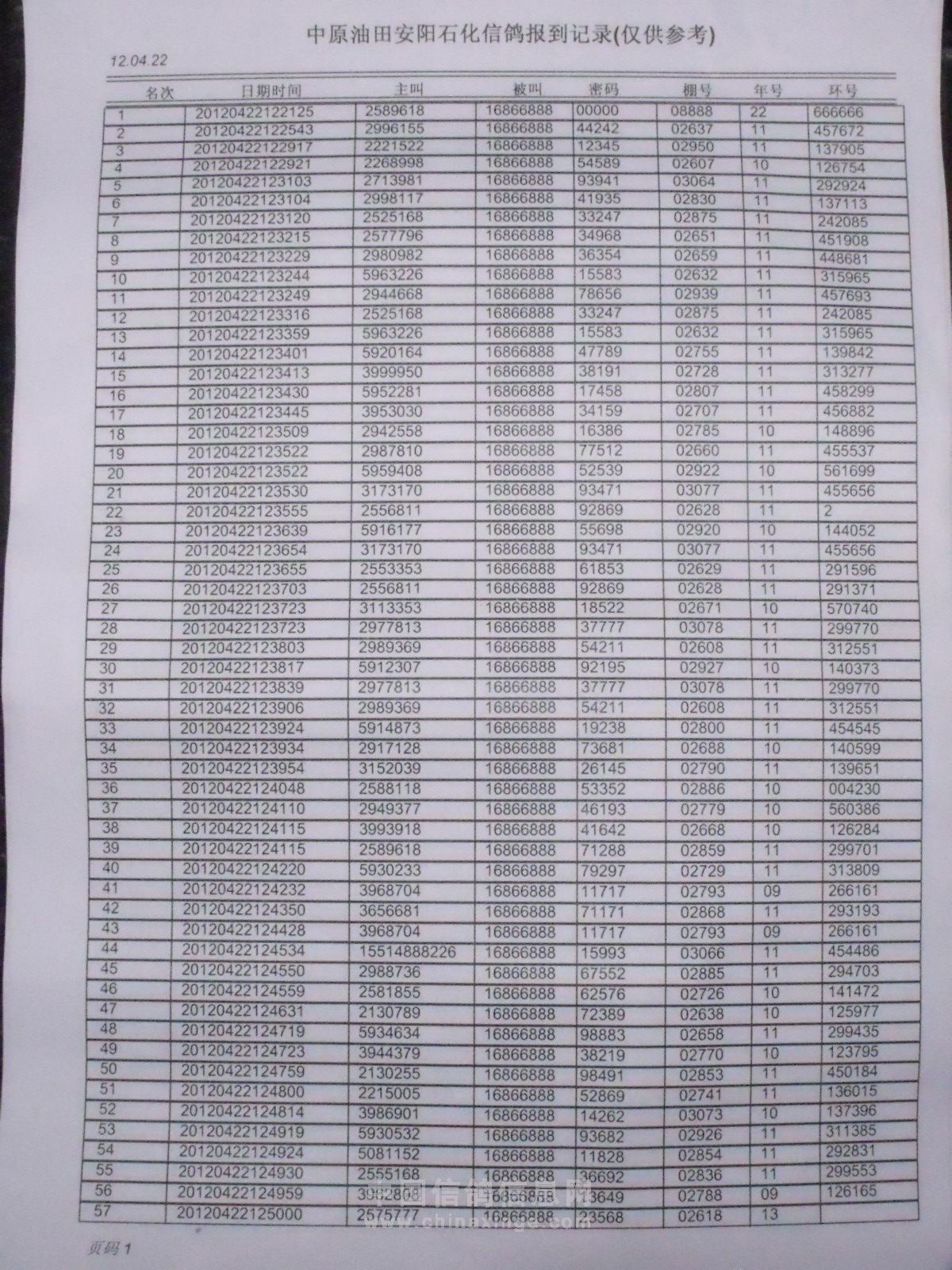 2012年春季500公里168信息单及监放单