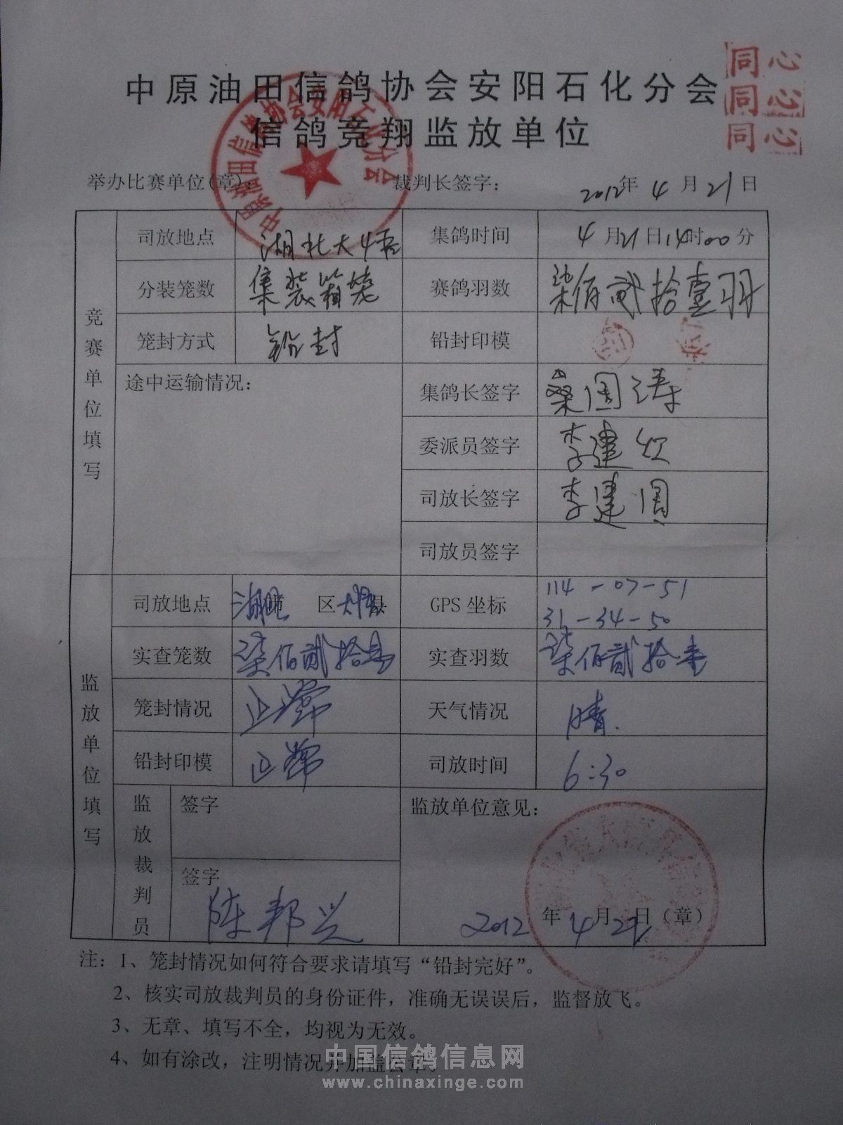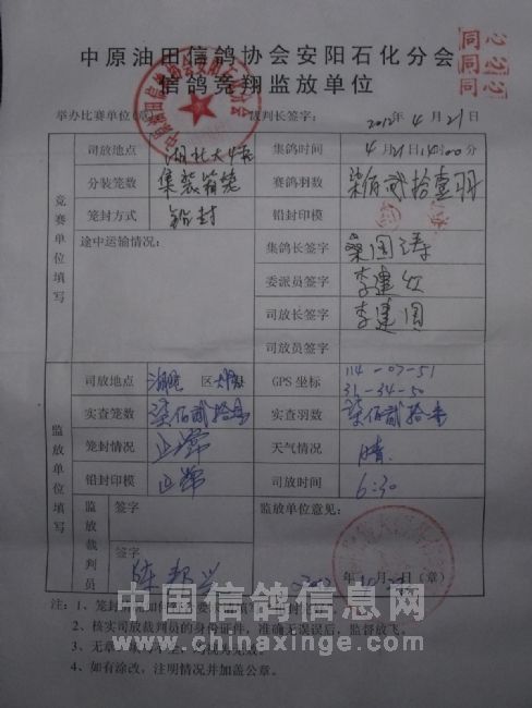 中原油田信鸽协会安阳石化分会