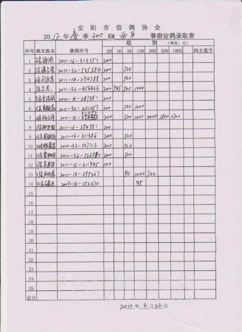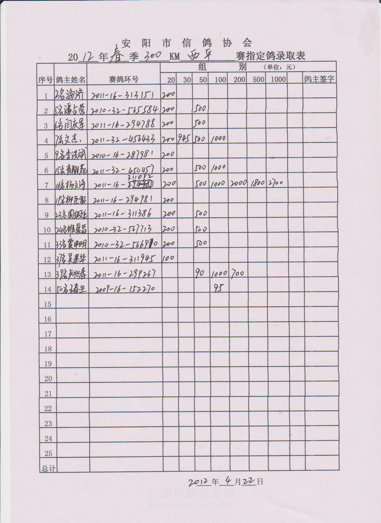 2021秋安阳市信鸽协会500公里大悟站成绩明细(临时)1-100