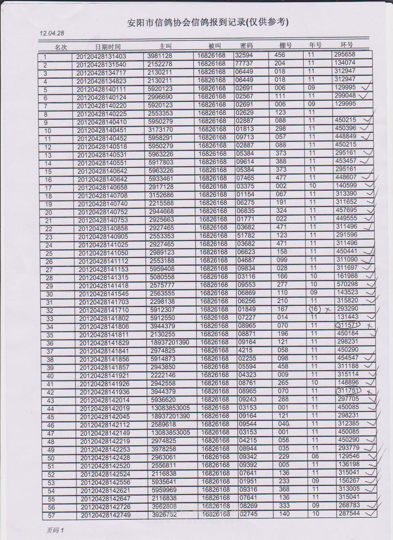 2021秋安阳市信鸽协会500公里大悟站成绩明细(临时)1-100