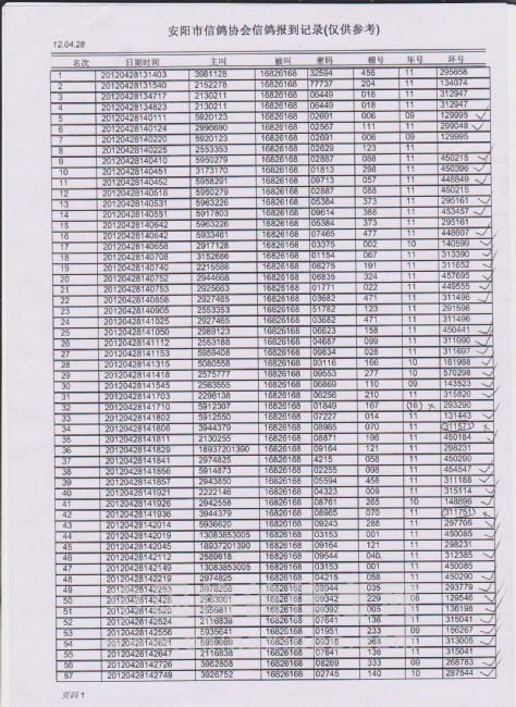 2021秋安阳市信鸽协会500公里大悟站成绩明细(临时)101-150