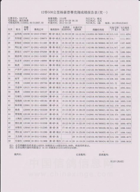 500公里大悟站前十名验鸽(9-10)