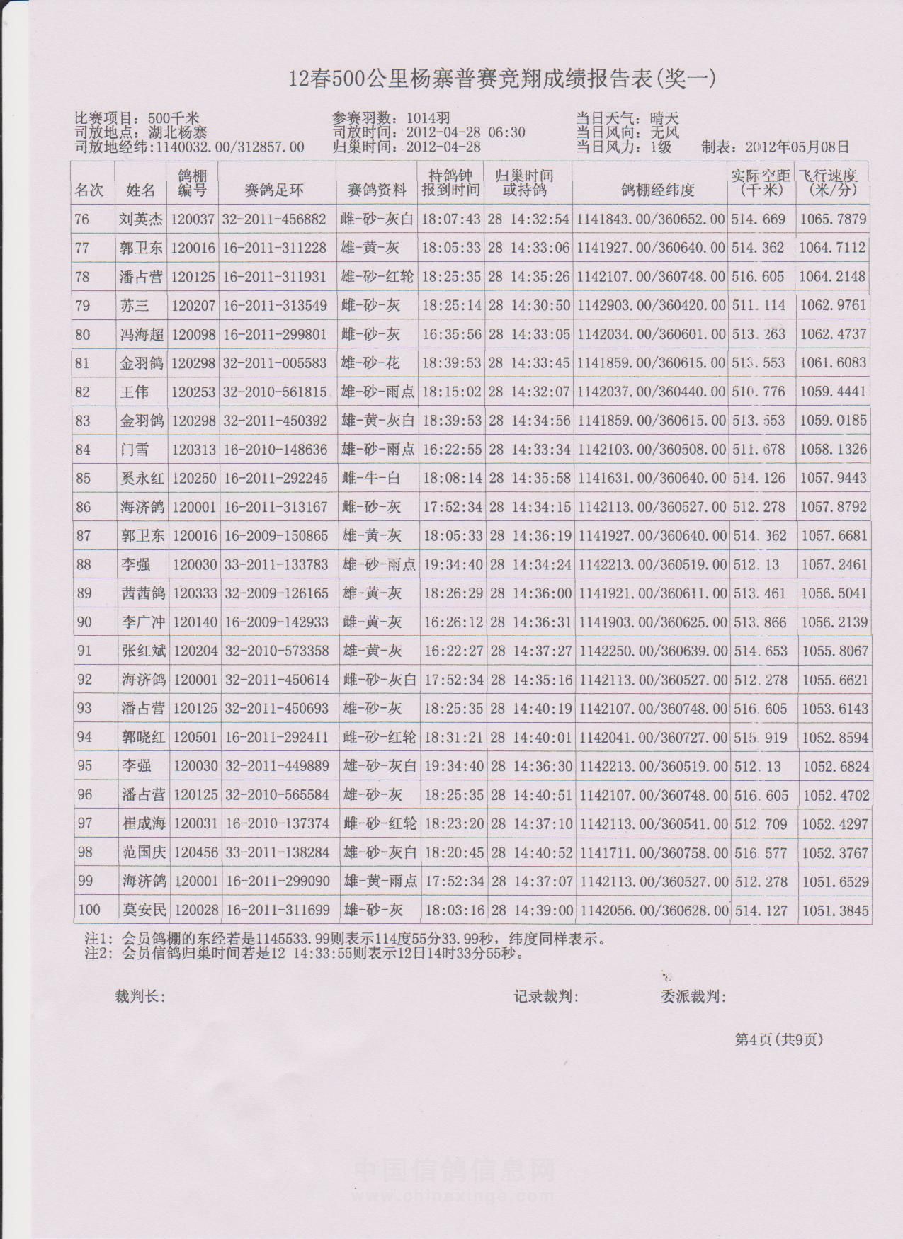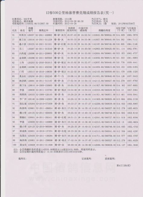 2021秋安阳市信鸽协会500公里大悟站成绩明细(临时)1-100