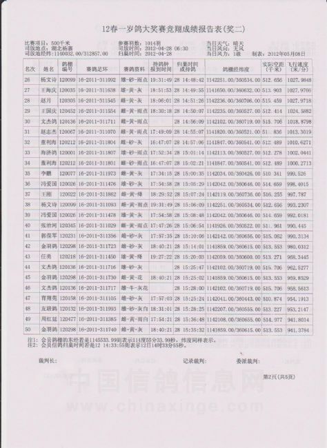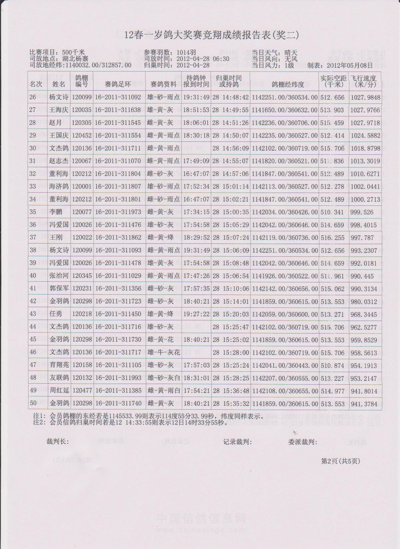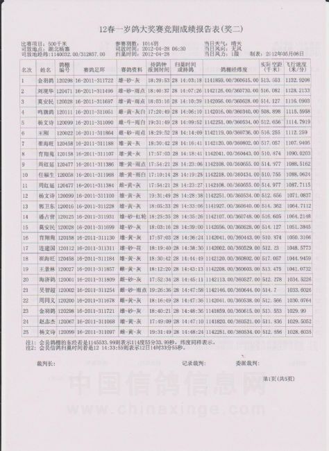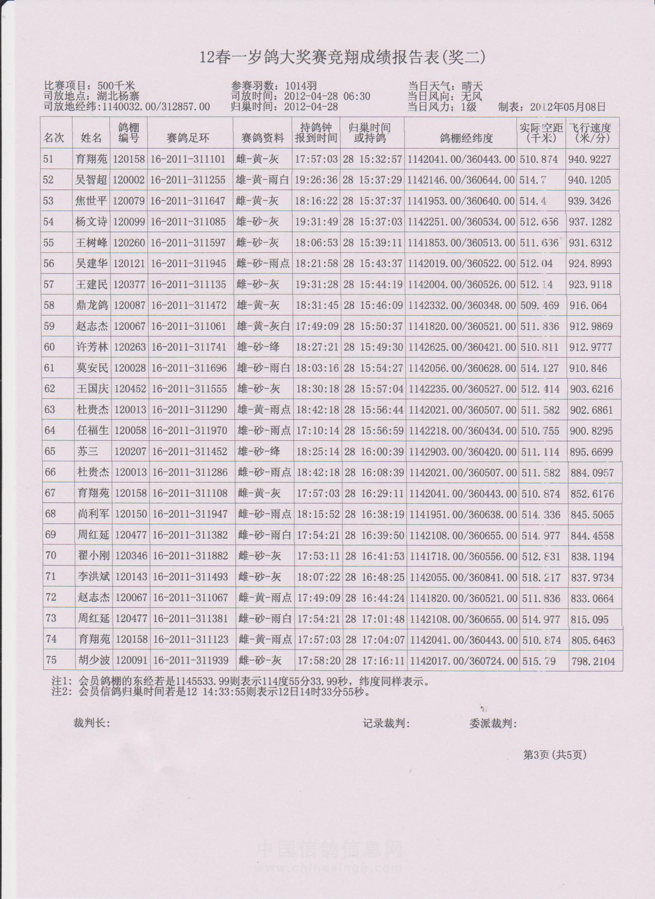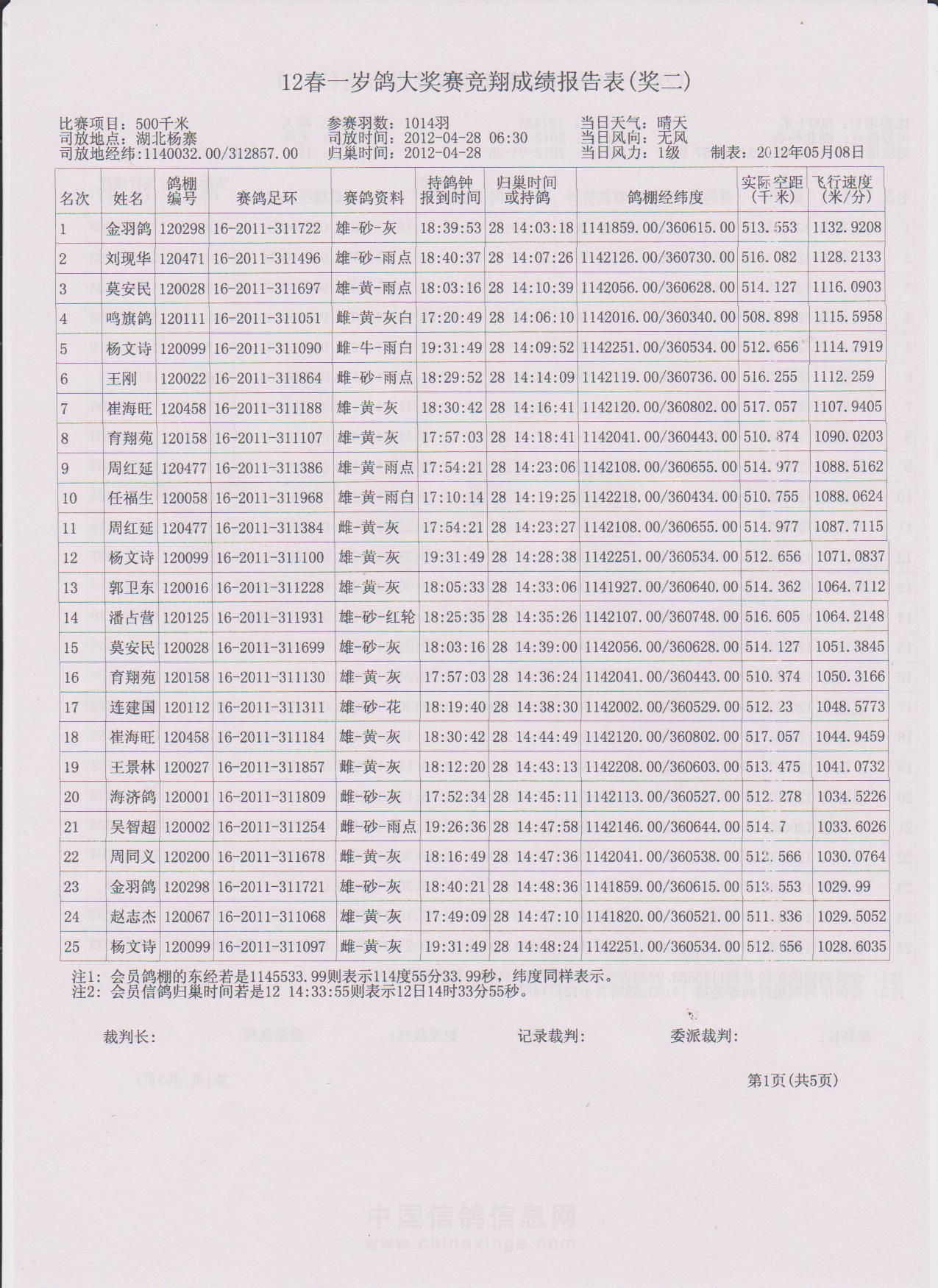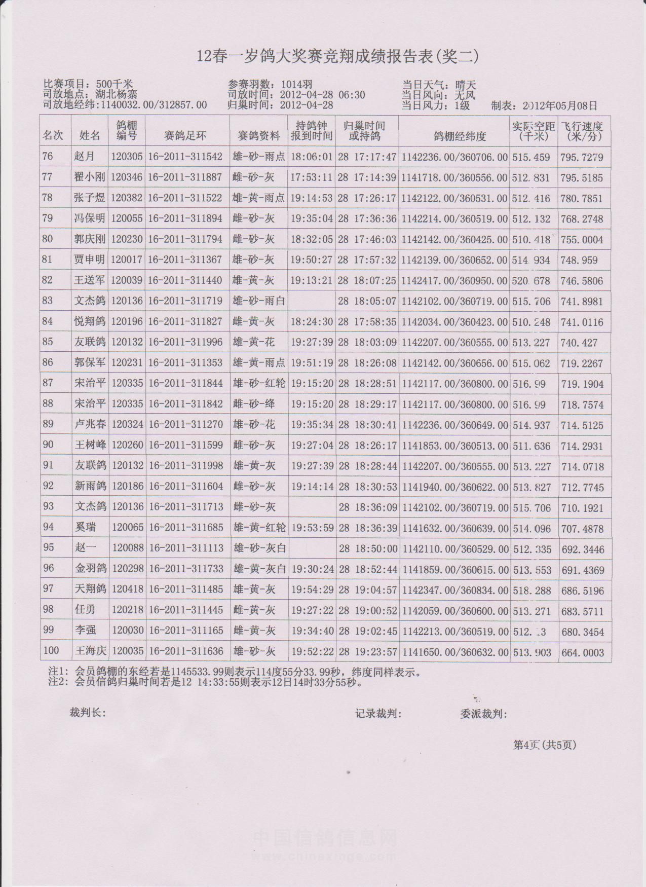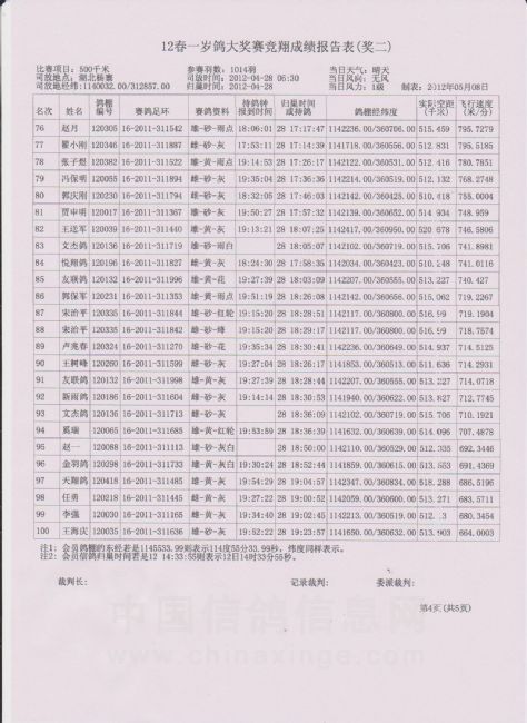 500公里大悟站前十名验鸽(汽车大奖赛冠军)(7-8)
