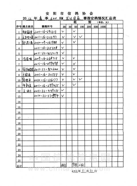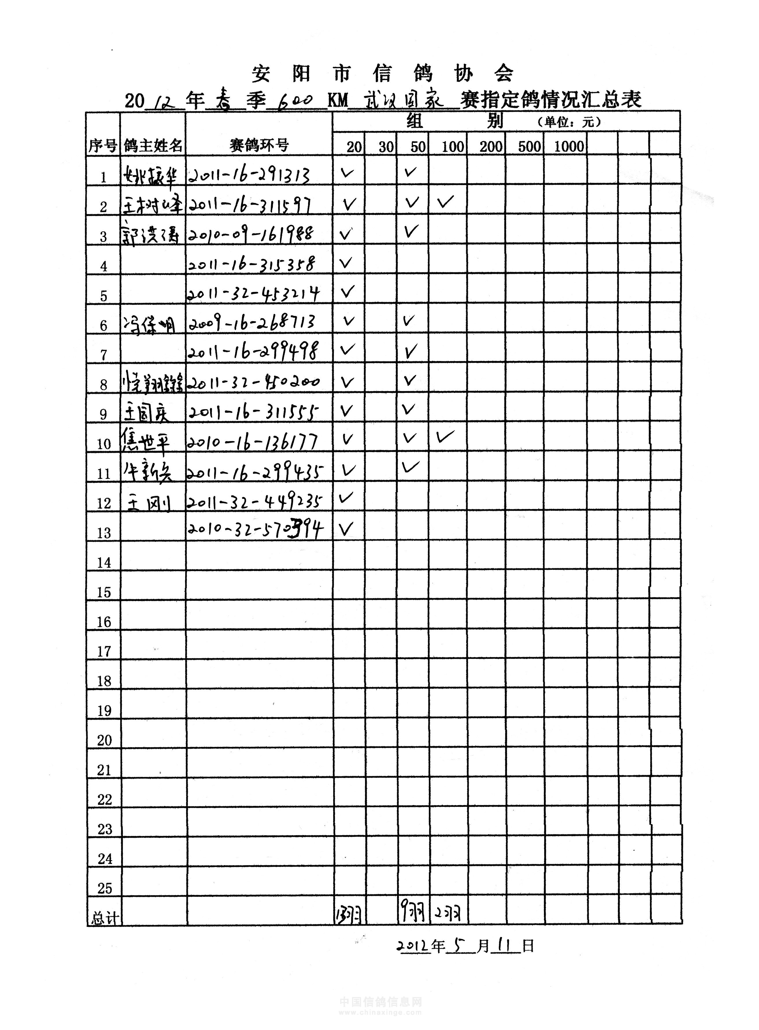 2021秋安阳市信鸽协会500公里大悟站成绩明细(临时)101-150