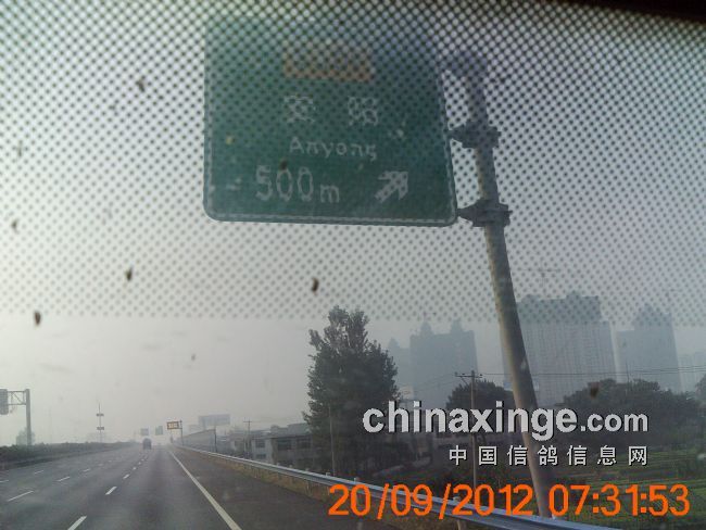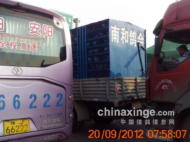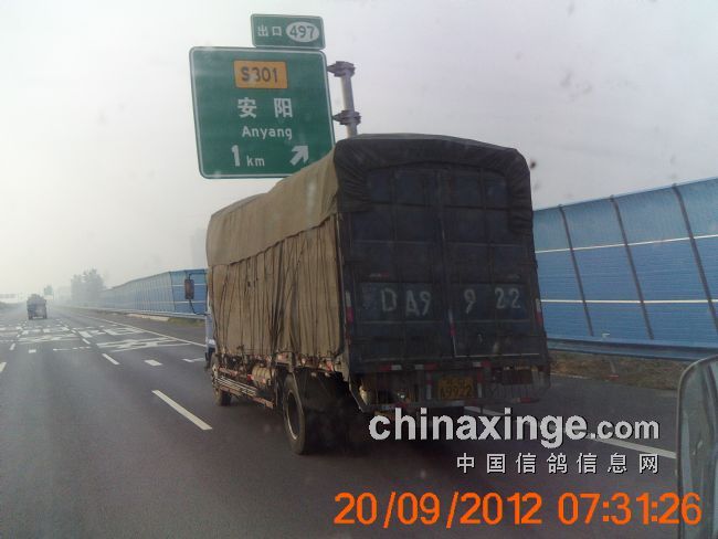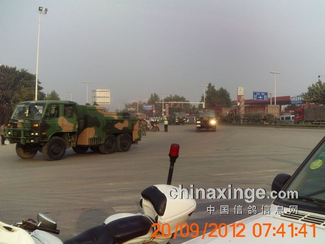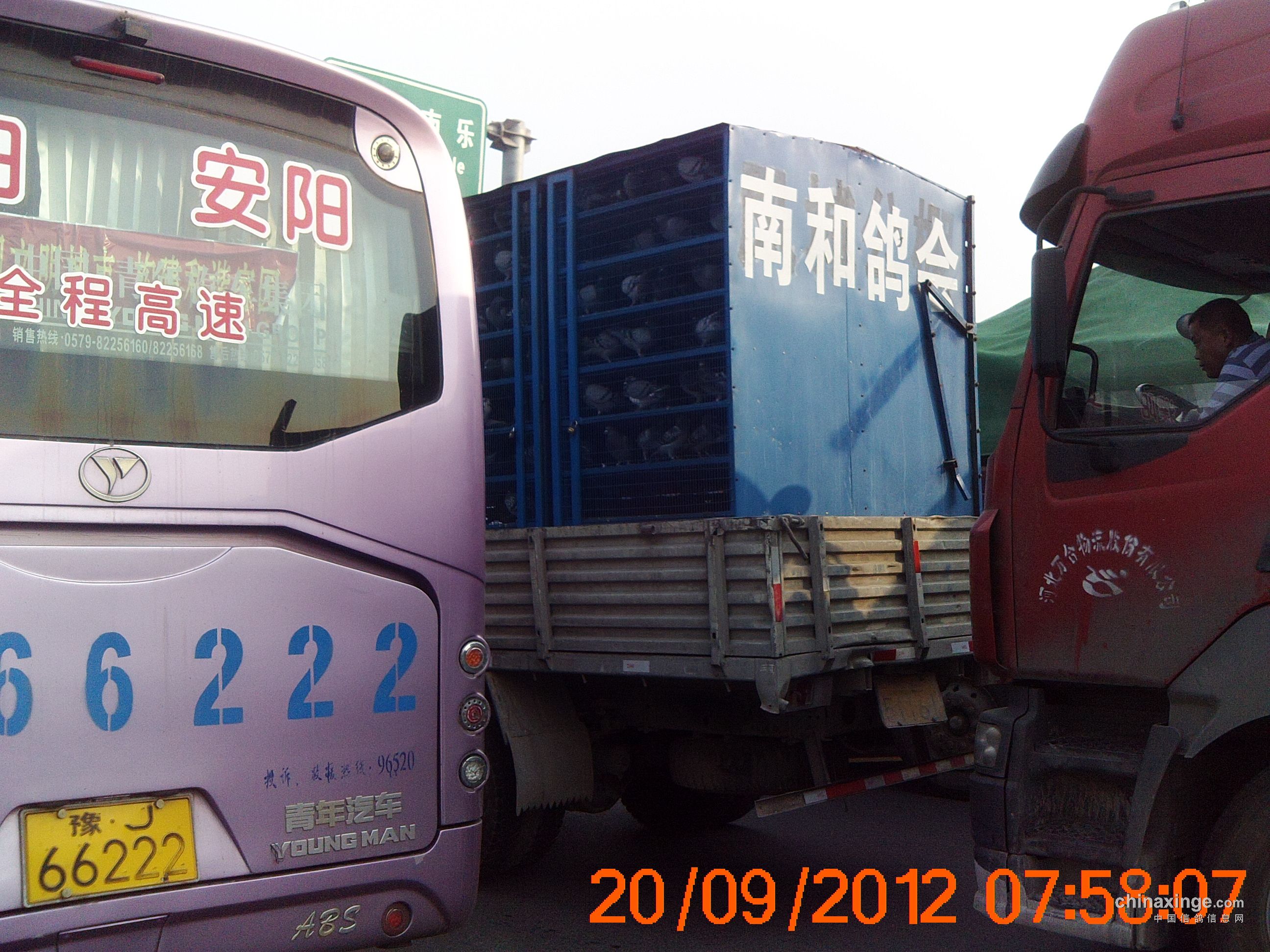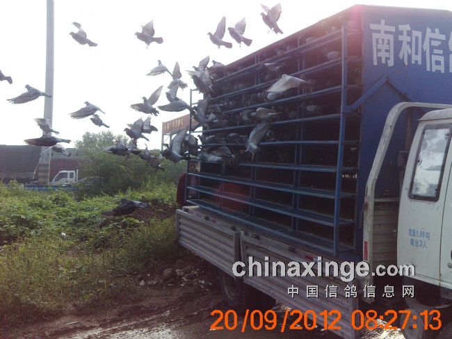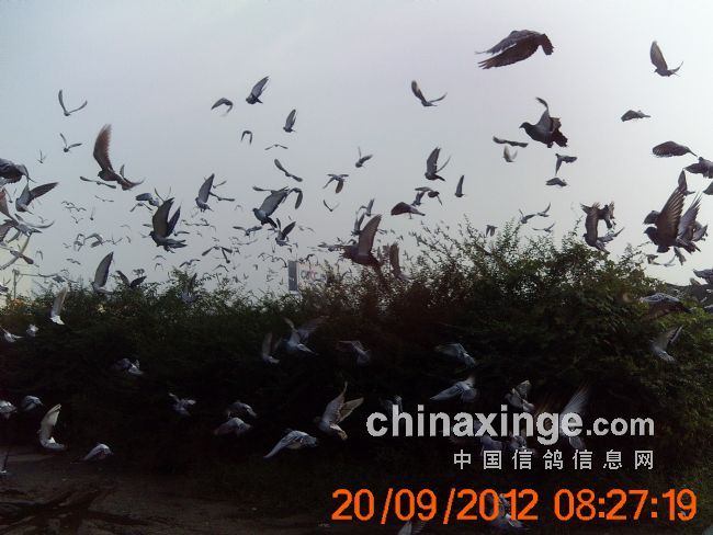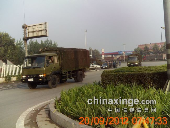 2012年南和鸽会100公里安阳训放,由于到达安阳后遇到大批部队调运,最后于早上8:52分开笼,司放地:晴,有薄雾,鸽群走势良好。